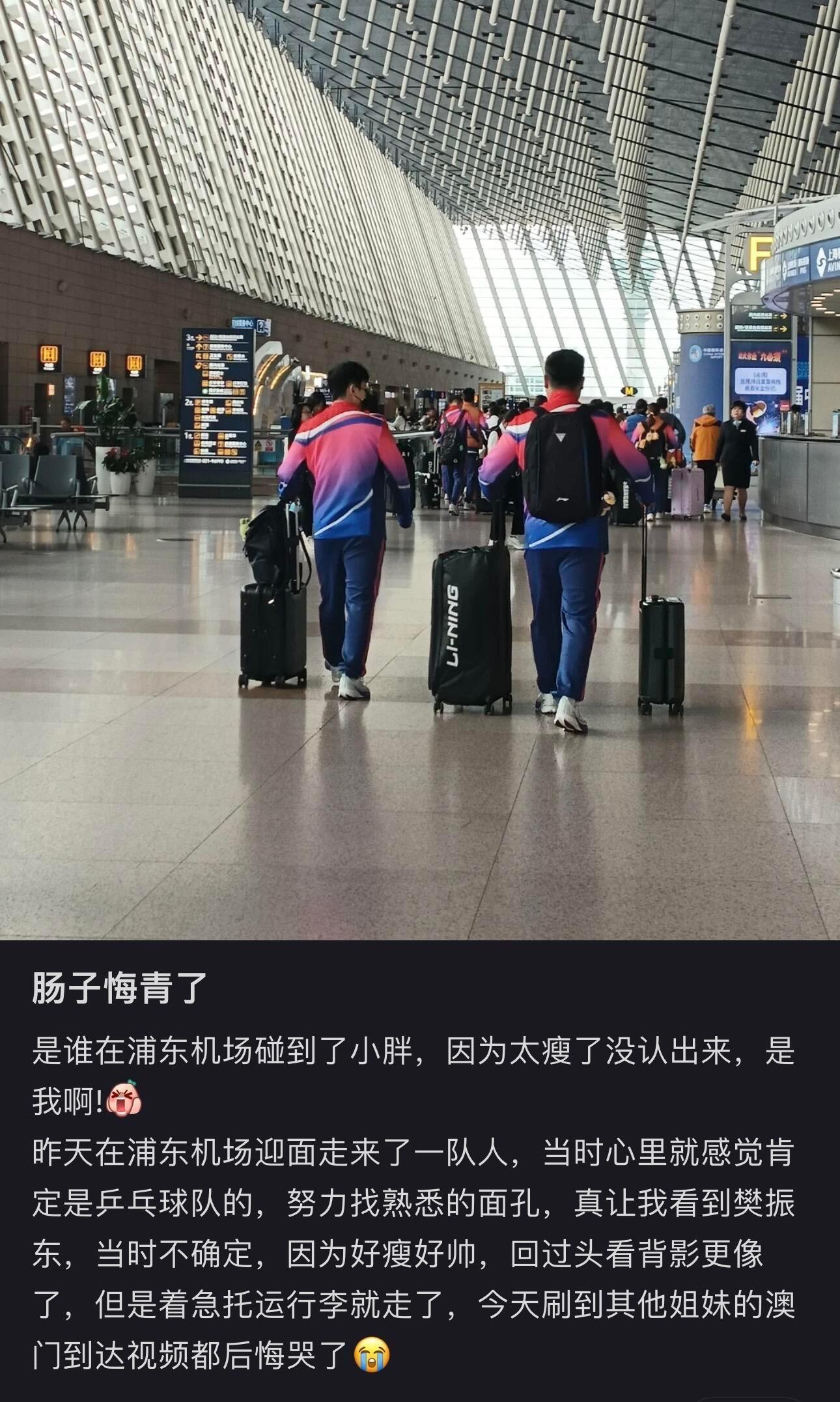 遇到樊振东因为太瘦没认出来,看起来真的瘦了好多,这就是来自运动员的自律啊。