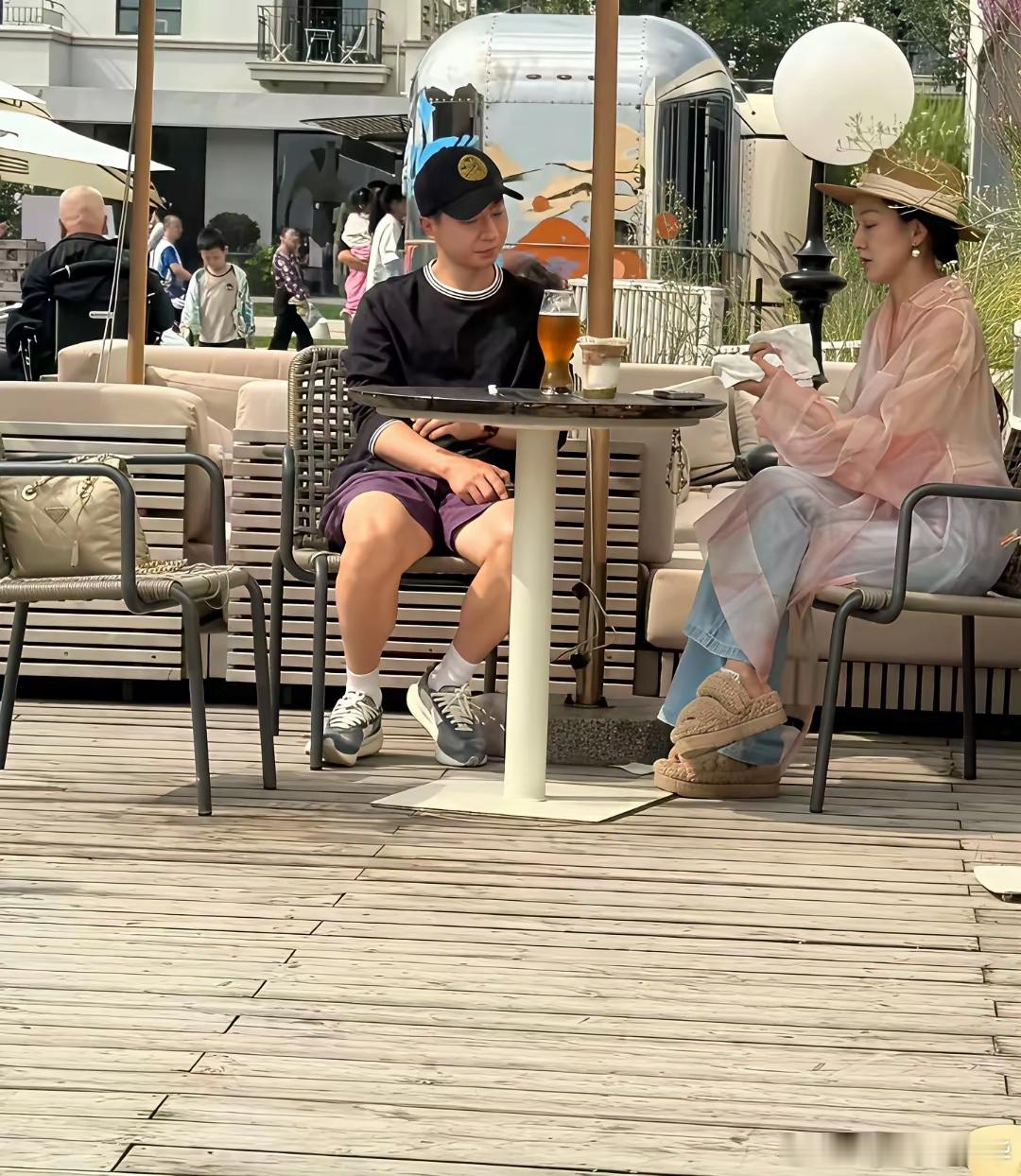 网友出去逛街偶遇了马龙和他漂亮的老婆,他点了一杯啤酒,他老婆点了一杯奶茶。