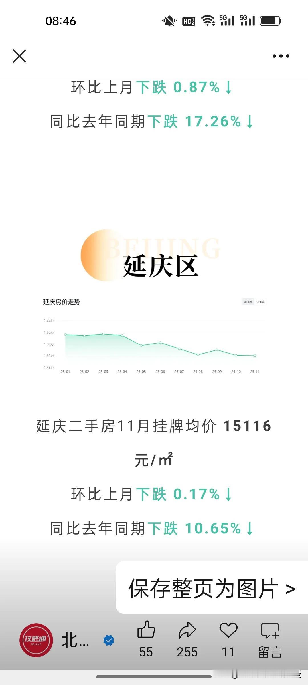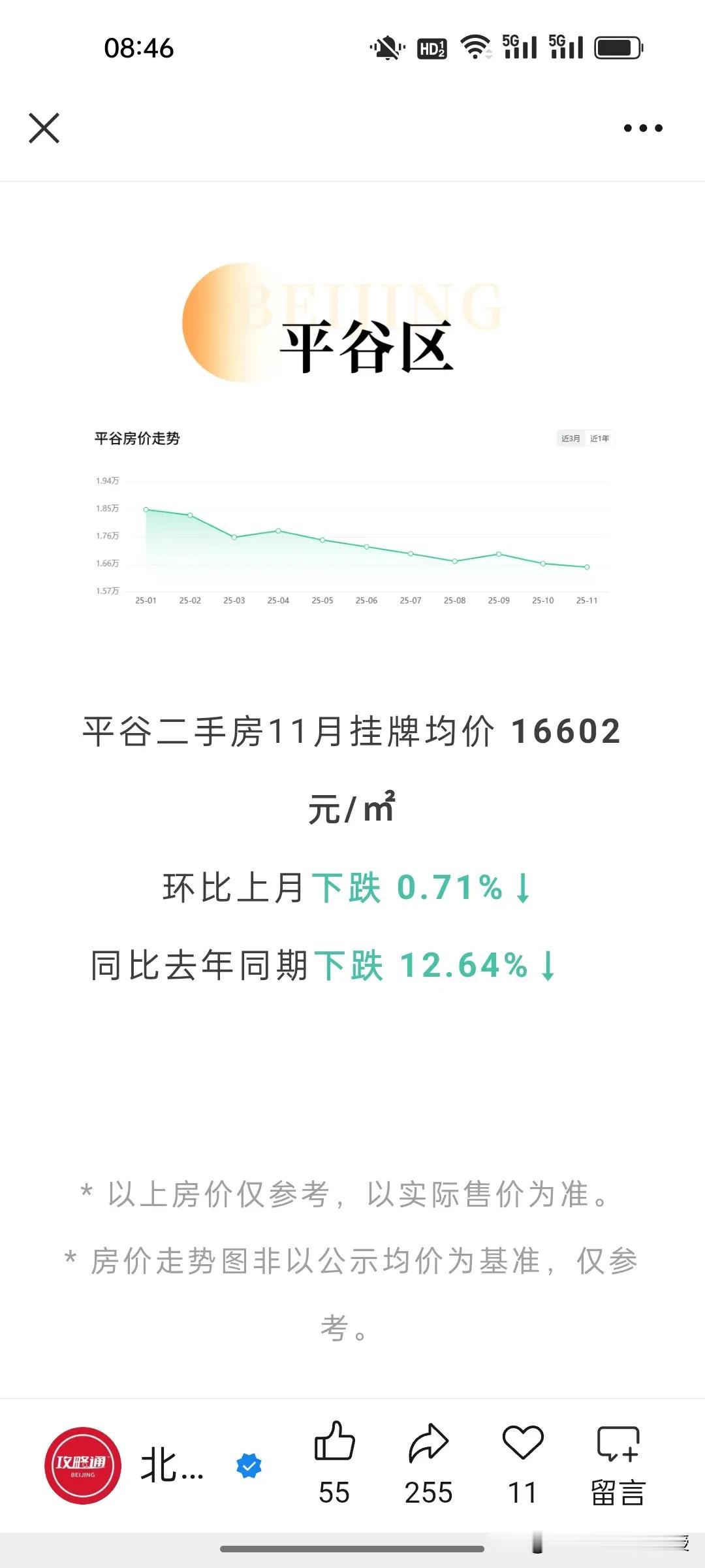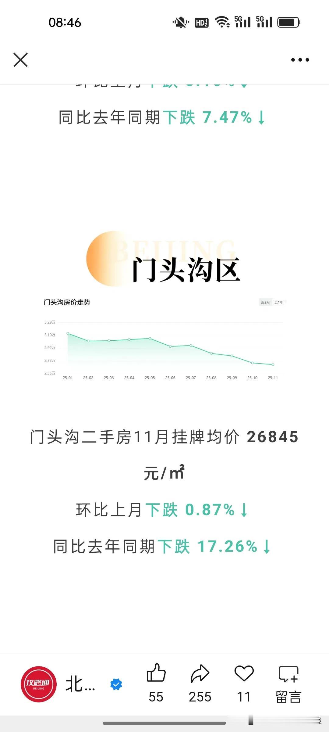 看下图,北京最新的11月房价统计,比去年同期下跌了7.33%,北京的房价已经回到