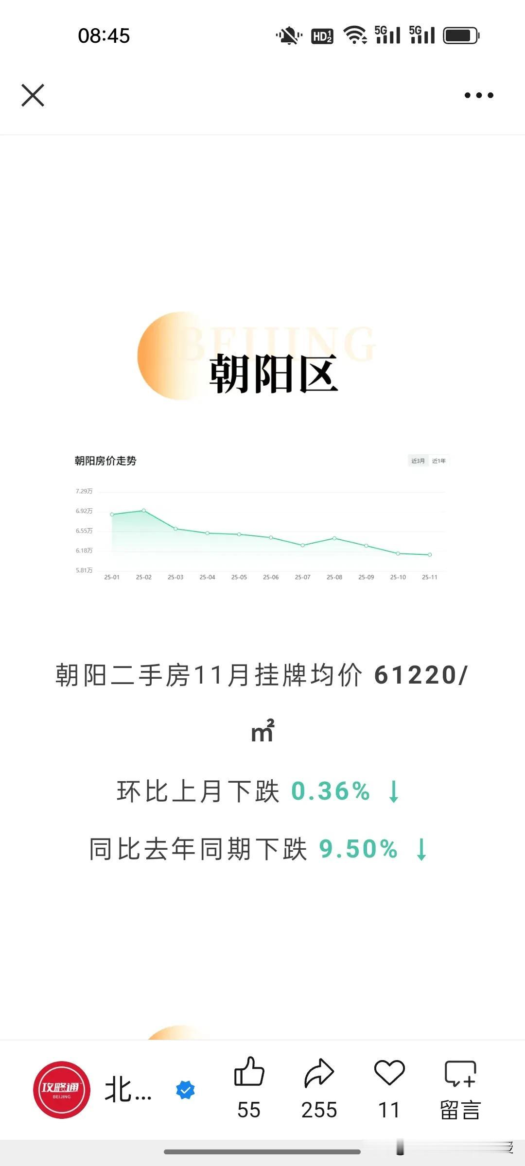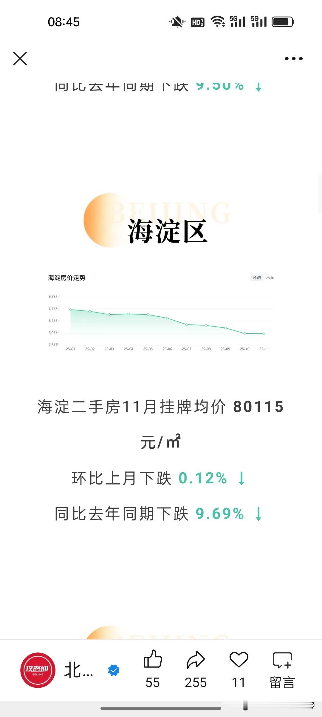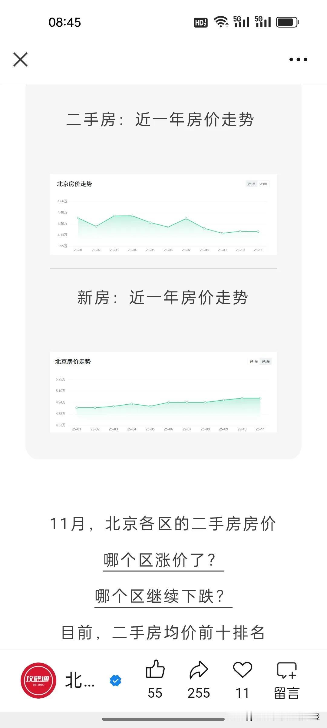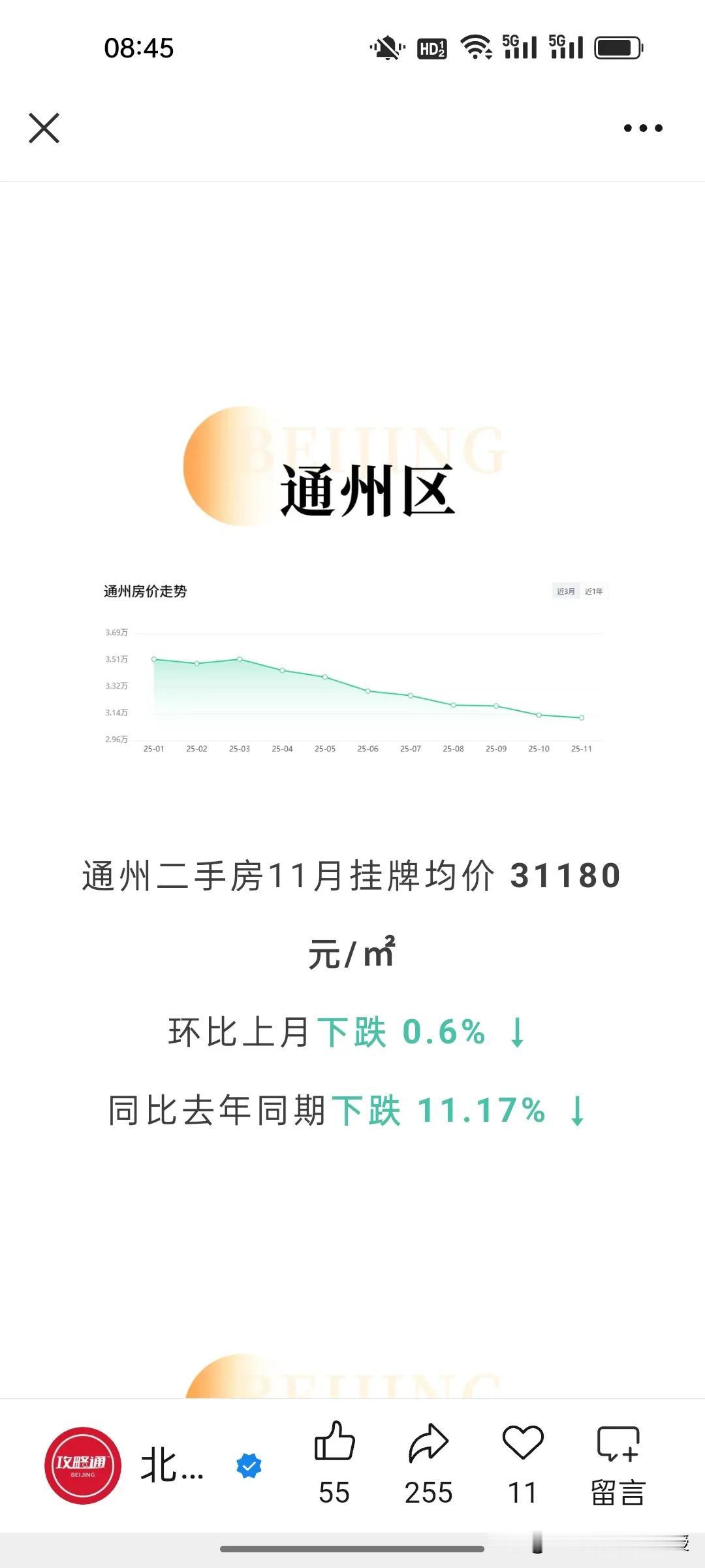 看下图,北京最新的11月房价统计,比去年同期下跌了7.33%,北京的房价已经回到12年前了。当然,最抗跌的就是西城区,毕竟是黄金地段,寸土寸金。跌幅最深的还是远郊区,比如门头沟和昌平,相比去年同期都下降了17%。 现在很多网友说,如果今年买房比10年前买房要少奋斗20年。这句话放在大城市尤为合适。 不过,值得注意的是,尽管北京多区房价普跌,但是现在一线城市黄金地段的房子依旧受买家欢迎,因为其抗风险能力强。最近一段时间上海静安和黄浦区多个接近一个小目标的高端楼盘都是秒罄,北京西城区的房价也依旧坚挺,这个两极分化的趋势在未来很长一段时间会延续。
