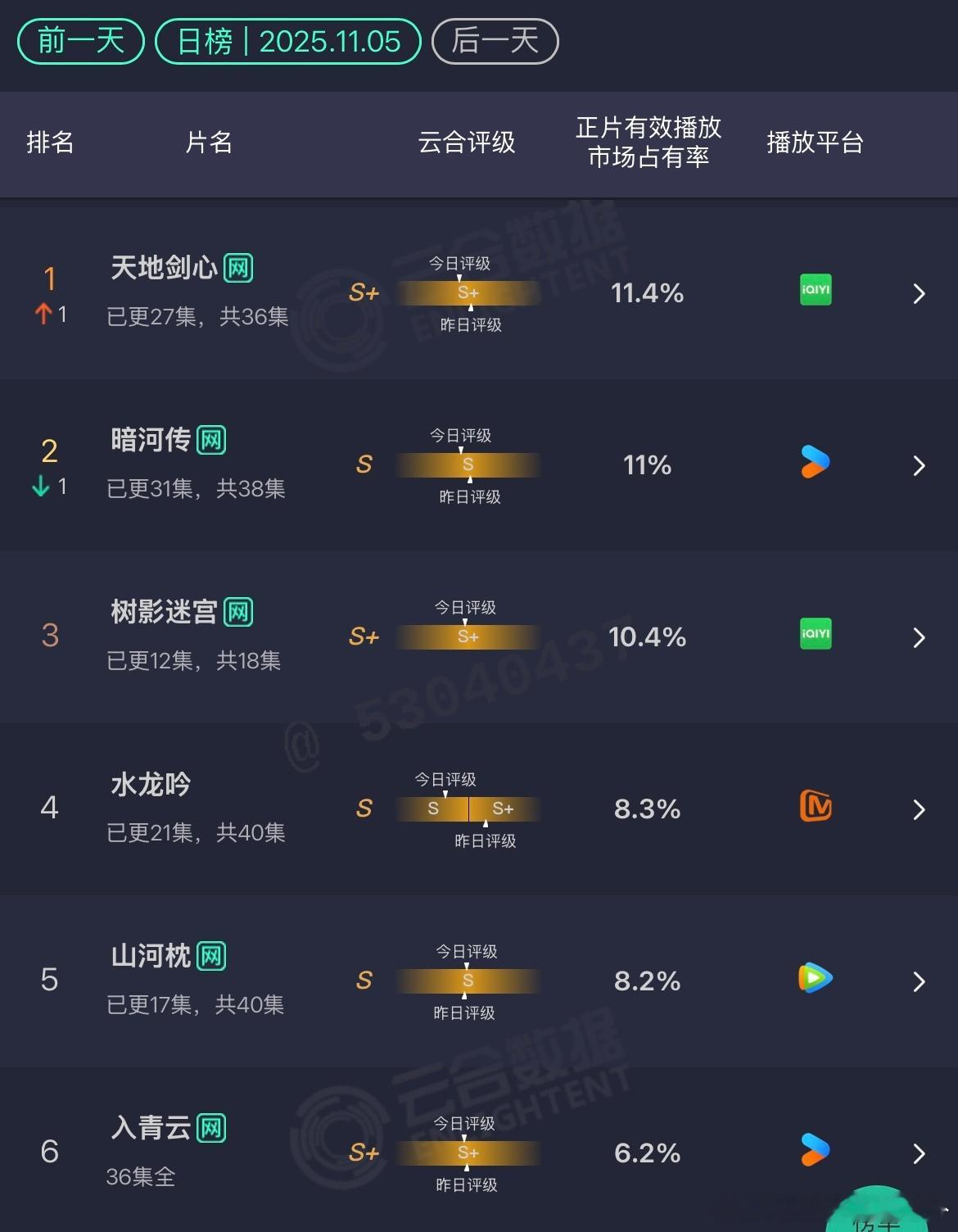 排名还真是每天都变,除了《树影迷宫》升,其他都降。