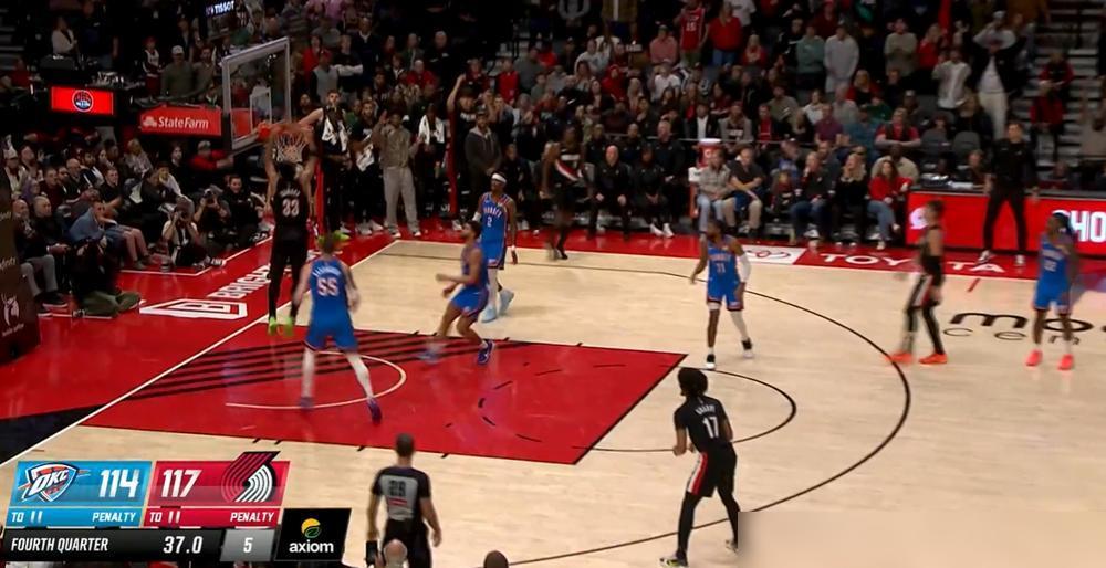 开拓者121:119力克雷霆,我发现三个不得不说的事实: 1、开拓者第一节就落