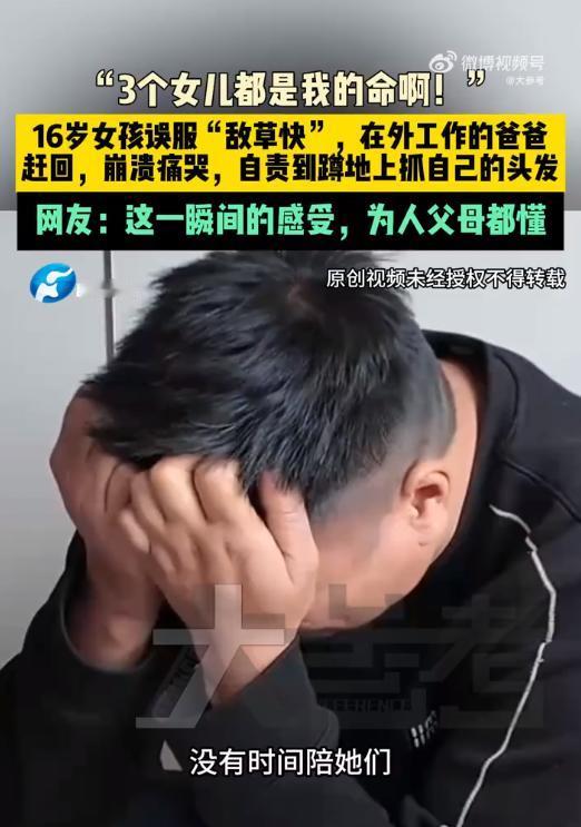 太心痛了!河南周口一名16岁的女孩误服“敌草快”150毫升,生命危在旦夕,医生说这种除草剂5毫升就有可能要人命。孩子爸爸崩溃大哭,在直播间求助,自责“3个女儿都是我的命啊!” 11月6号,河南周口一位中年男人的求助信息,最近在网上牵动了无数人的心。 他守在重症监护室门外的长椅上,整整六天几乎没合过眼,原本还算精神的汉子,短短几天就熬得眼窝深陷,嗓子哑得发不出完整的句子。 他16岁的大女儿,因为误服了家里的敌草快,正和死神拼命。 事发当天是11月1日早上,根据孩子爸爸的口述,家里的大人都出门办事,姑娘独自留在家中。 口渴难耐的她去厨房找水喝,看到了角落里放着的一瓶刚买的除草剂。 那瓶子外观和普通饮料瓶很像,瓶身也没贴什么醒目的警示标识,姑娘没多想就拧开喝了几口。 刚咽下肚就觉得味道不对,家人刚好在这时回到了家。 一进门,他们就看到姑娘趴在地上干呕,嘴角沾着白色泡沫,旁边倒着的敌草快瓶子让一家人瞬间慌了神。 照看孩子的奶奶不敢耽搁,立刻把人送到医院洗胃,姑娘中途清醒过一阵,还和赶回来的妈妈简单聊了几句,可很快就陷入昏迷,被送进重症监护室一直待到现在。 男人在深圳打工,接到消息连夜往回赶,到医院时连女儿最后一句话都没赶上说。 看着监护室门上的红灯,他再也撑不住,“咚”地跪在地上,额头往冰凉的地板上磕,反复喊着“求你们救救她,我三个闺女都是我的命”。 直播间里,网友们看得揪心,纷纷出主意,有人突然提到:“2021年福建有个14岁姑娘误喝这药,后来转去山东齐鲁医院治好了,要不要试试?” 这话让绝望的家人看到了希望。 2021年那起事件里,福建姑娘小魏误喝敌草快后吐血,当地医院处理后效果不佳,家人决定转去齐鲁医院。 两位司机轮流开车,冒大雨跑了1500公里,开了16个小时才赶到,医院早就安排好团队等着接诊。 齐鲁医院的中毒与职业病科在全国都有名,是最大的中毒治疗基地之一,每年要收五六百例除草剂中毒患者。 针对敌草快中毒,这里的菅向东团队有套成熟的办法,被称为“齐鲁方案”,后来还联合全国专家形成了“泰山共识”。 小魏当时喝了30毫升左右,团队给她做了四次血液净化,还及时处理了治疗中出现的下肢血栓,没让危险进一步发展,住了12天就治愈出院了。 可周口这位姑娘的情况更棘手,她喝了150毫升,而医生说这药5毫升就可能要命,超过100毫升损伤比百草枯还厉害,48小时内就可能多器官衰竭。 这种药最凶险的地方在于,初期只是口腔食道烧得疼、呕吐,等你觉得好点了,毒素早钻进肝肾和肺部,就算洗了胃,血里的毒也清不干净。 目前姑娘还靠呼吸机维持着,家人正联系转院事宜,所有人都在盼着奇迹。 不管是周口还是福建的案例,根源都出在农药存放上。 医生说,每年都能接到好几起类似的事,要么是农药随便放厨房客厅,孩子一伸手就够着,要么是用饮料瓶装,这不就是给孩子埋隐患吗? 家里有农药除草剂的,真得多上点心,别图方便随手放,锁进孩子够不着的柜子里,瓶身贴好醒目警告,不用的空瓶赶紧处理掉。 更要早点跟孩子说清楚,不认识的东西绝对不能碰、不能喝。 这些提醒听着普通,可在生命面前,从来都不是小事。 现在大家能做的,就是默默为周口的姑娘祈祷,希望她能像福建的小魏一样,闯过这道难关。