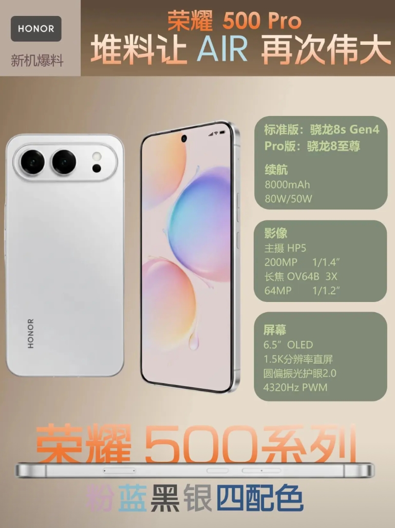 这次李健来了,荣耀500直接上骁龙8sgen4,简直是一个违背祖宗的决定,而且电池8000mAh,同级第一名