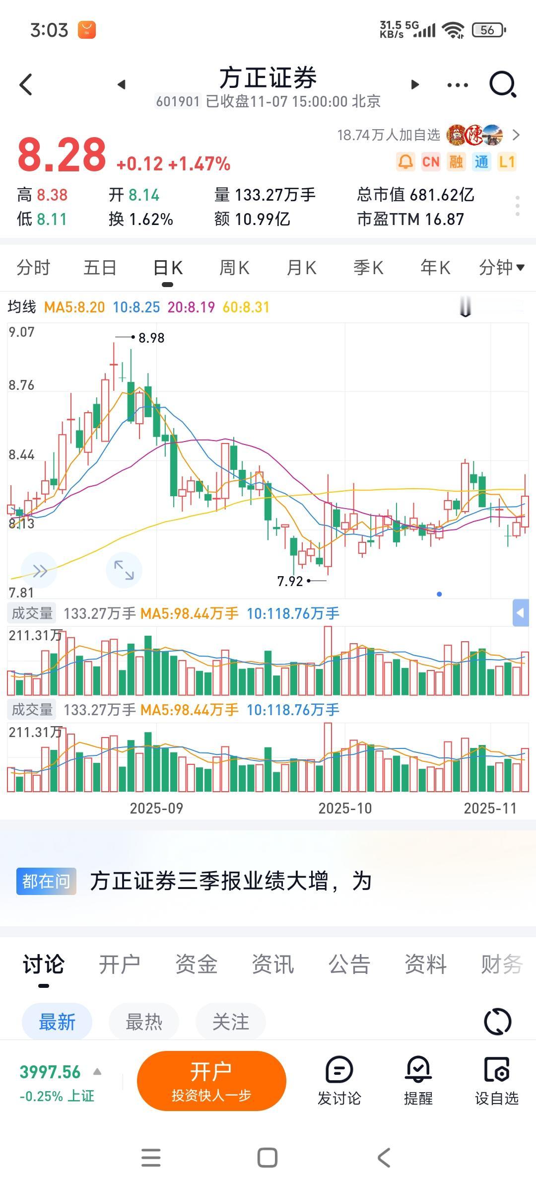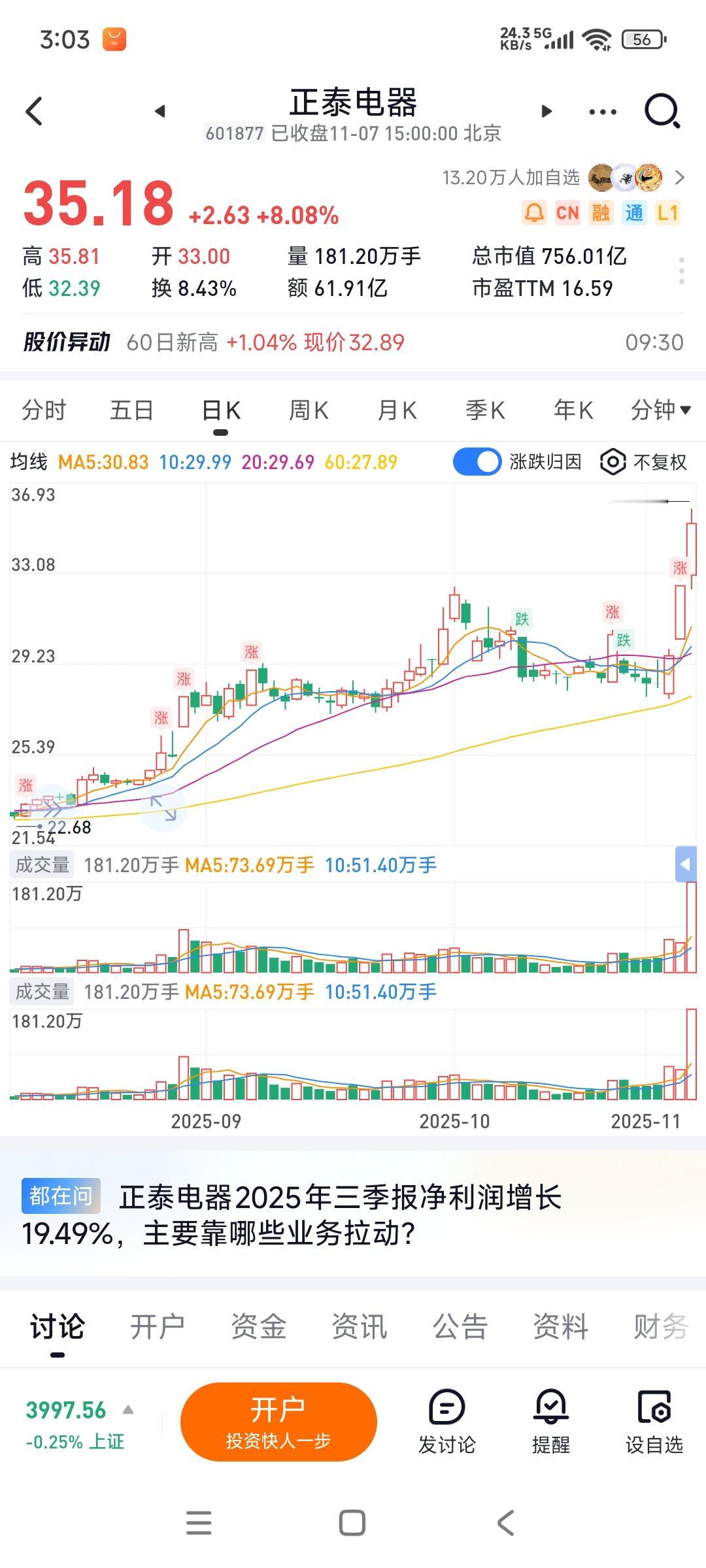 今天最大的亏损来自第三大仓位的中兴通讯与第五大仓位的北汽蓝谷,也因为第一仓位的中国太保与第四大仓位的方正证券收红,打野的正泰电器再次冲击涨停并收盘大涨,以至于今天的持仓涨了几千块钱... 我的风格还是比较保守,赚不了大钱...唉!
