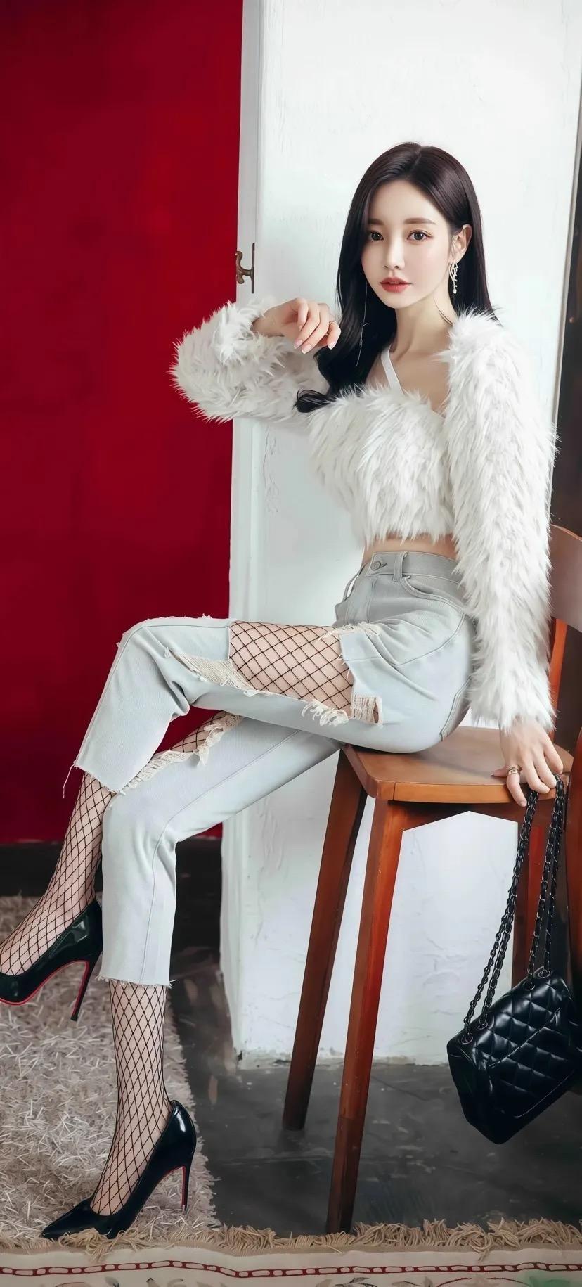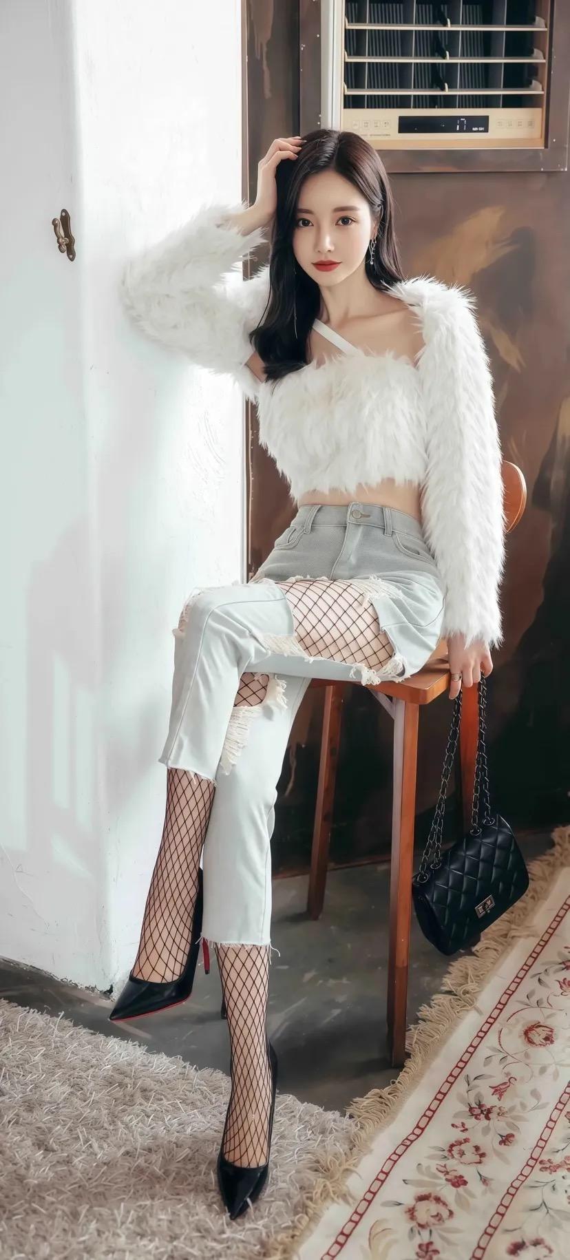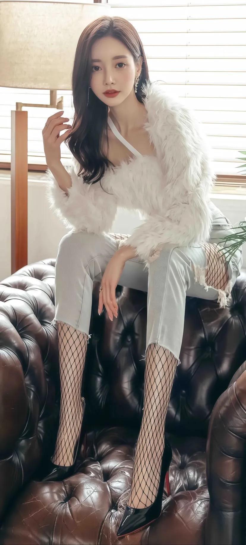 复古风穿搭,毛绒外套+网袜,时髦又温暖!