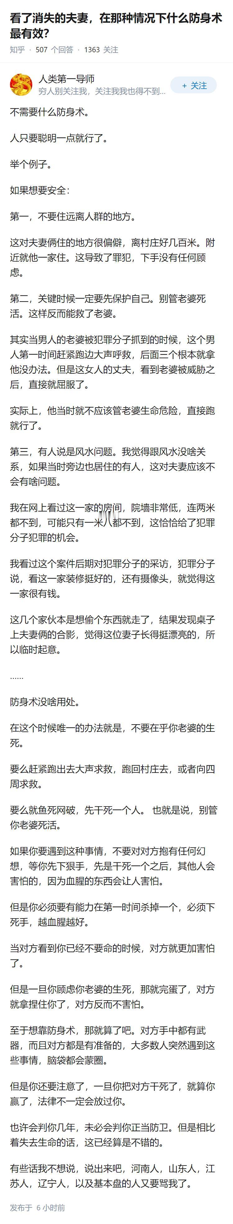 看了消失的夫妻,在那种情况下什么防身术最有效?