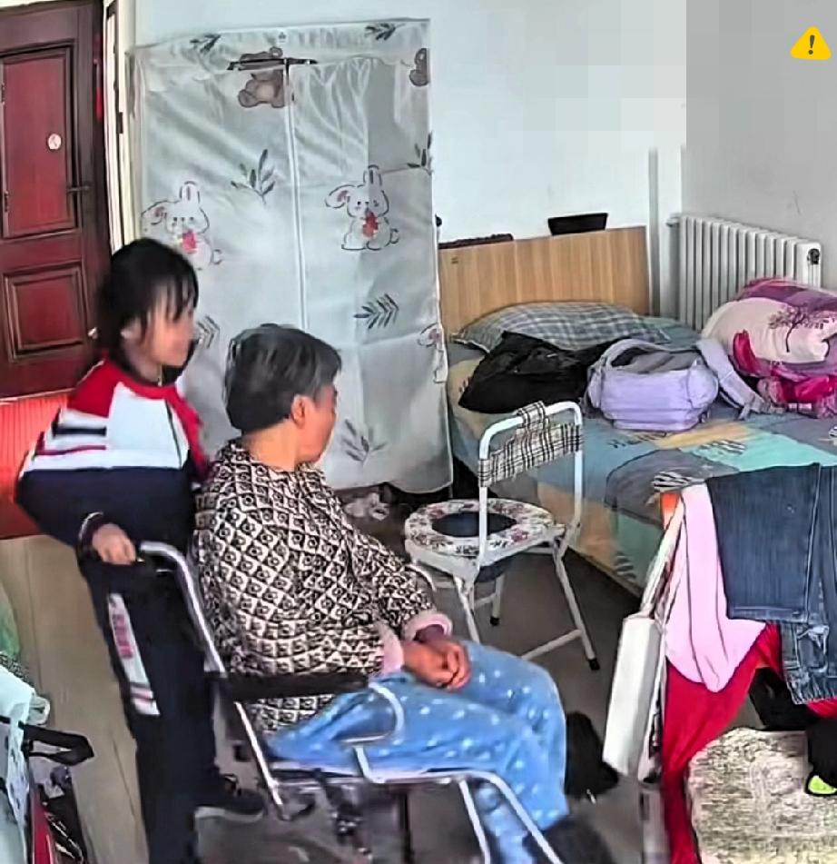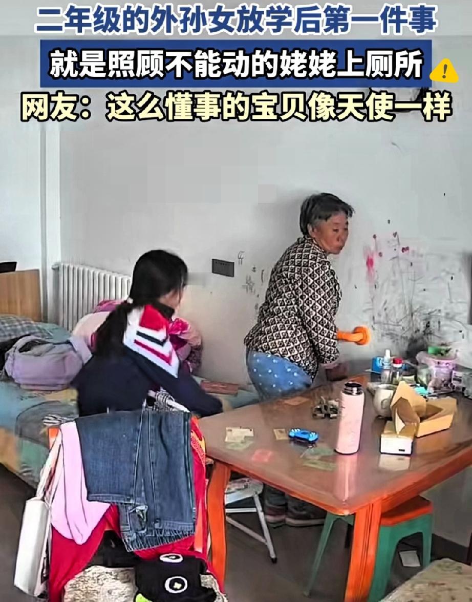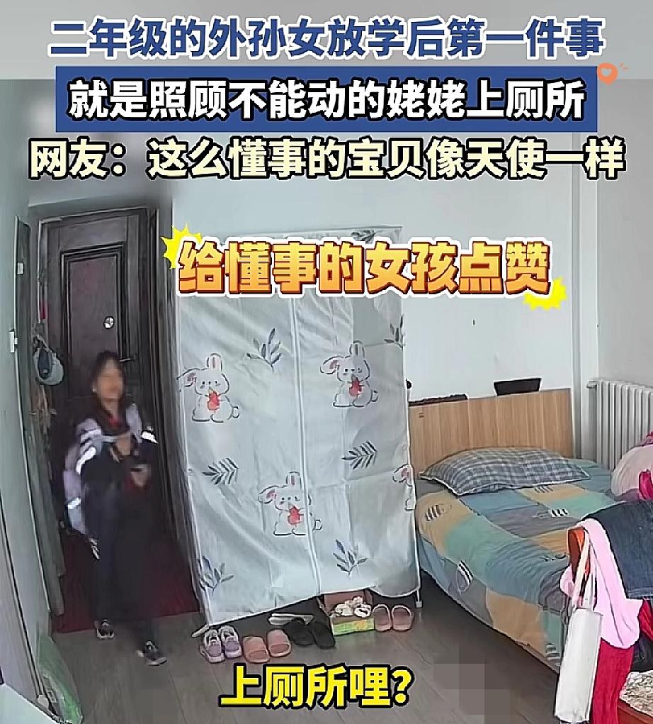 河北二年级女孩这一幕,看着让人觉得很感动! 放学刚进门撞见生病姥姥要上厕所,没