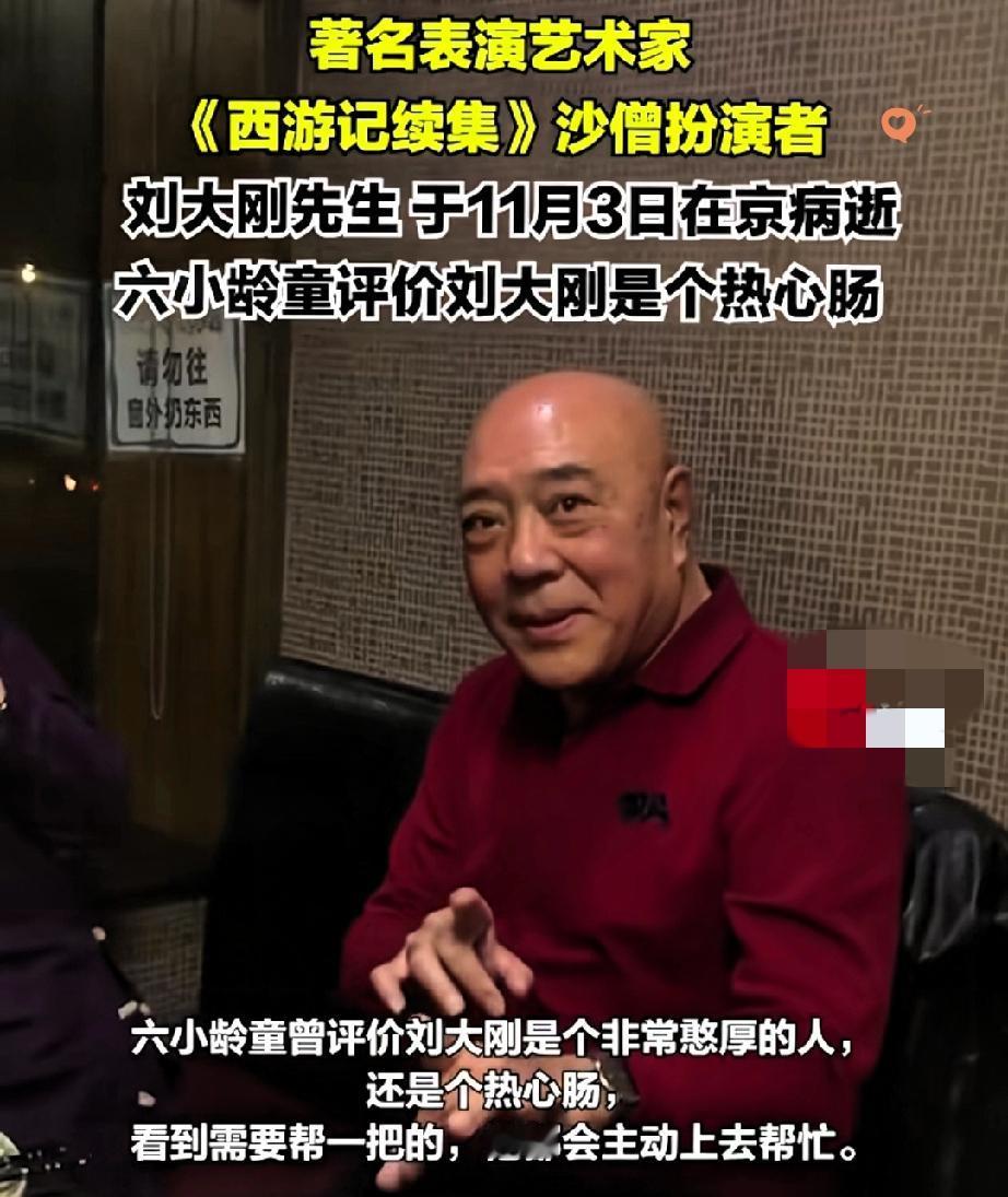 童年记忆又少了一块! 78岁的“沙师弟”刘大刚老师病逝的消息,看完心里满是怅然。 他在《西游记续集》接替闫怀礼饰演沙僧,挑着担子任劳任怨的模样,陪着多少人长大。 京剧出身的他功底扎实,戏里踏实敬业,戏外憨厚热心,六小龄童都夸他是热心肠。 如今两位“沙僧”都已离去,取经路上的经典身影,只能留在回忆里了。 老一辈艺术家的可贵,从不是流量加持,而是把每个角色都演进人心,用敬业撑起经典。 他们的离开,不只是一个演员的落幕,更是一代人青春回忆的渐行渐远。 你心里最难忘的“沙师弟”名场面是什么?或者你还记得刘老师演过的其他角色吗?来评论区聊聊~