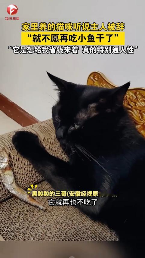 “太有灵性了!”11月7日报道,河北燕郊一男子被公司辞退后,对着家里养的黑猫倾诉,没想到从那以后,黑猫为了帮主人省钱,就不再吃小鱼干了!男子感觉非常神奇,仿佛他的猫真的能听懂人话一般。[熊猫] 燕郊开发区的李先生最近在短视频平台上发了一条动态,讲的是他家黑猫的反常举动,10月中旬他被公司裁员,回家后随口跟猫念叨了几句“以后可能得省着点花钱了”。 从那天起,这只平时见到小鱼干就两眼放光的黑猫,突然对零食不感兴趣了,李先生拿着小鱼干在它面前晃,它只是凑近闻闻,转身就走。 这种情况持续了快两周,李先生开始担心猫是不是生病了,专门带去宠物医院做了检查,医生说各项指标都正常,食欲也没问题,就是不吃零食而已。 回到家,李先生仔细观察了几天,猫的猫粮吃得很正常,每天还是会按时跑到他腿边蹭来蹭去,精神状态也挺好,唯独那包放在茶几上的小鱼干,它看都不看一眼。 李先生在视频里开玩笑说:“我跟它说了失业的事儿,它可能真听懂了,知道家里要省钱。” 李先生后来又做了个实验,他换了另一个品牌的小鱼干,结果猫还是不吃,但换成冻干鸡肉后,猫立刻就吃了,这说明猫并不是对所有零食都拒绝,只是对小鱼干“情有独钟”地不吃。 李先生回忆,自己之前每次买小鱼干都是在楼下便利店,一袋15块钱,失业后的第三天,他去便利店买水,顺手又拿了一袋小鱼干,结账时看到价格,犹豫了一下还是买了。 可能就是那一瞬间的犹豫,被猫察觉到了,从那以后,李先生每次拿出小鱼干,猫的反应就变了, 养猫十年以上的人应该都有体会,猫对主人的生活习惯观察得非常仔细,你平时几点起床、几点喂食、用什么语气叫它,它都记得一清二楚,一旦某个环节发生变化,它会立刻注意到。 李先生现在已经找到新工作了,上班第一天的晚上,他特意买了猫最爱的冻干零食回家,猫吃得倒是挺欢,那包小鱼干到现在还在茶几上放着,一直没开封。 李先生说,他打算把这包小鱼干留着,等以后有机会了再打开,倒不是真信猫能听懂人话,只是觉得这个小插曲挺有意思,值得纪念。 看了这个新闻,真是被暖到了,评论区也特别热闹。 好多养宠物的网友都说,自家那个“毛孩子”也干过类似的事儿,有人说自己生病发烧时,家里平时高冷的猫咪居然一整天都趴在枕头边守着,还不时用脑袋蹭蹭她的额头。 还有位网友讲,有次和家里人吵架声音大了点,家里的金毛赶紧跑过来,把最喜欢的玩具叼过来放在中间,然后坐在那儿看看这个又看看那个,那眼神明显就是在劝和,当时心就软了。 有网友开玩笑说:“有没有一种可能,是主人失业后心情不好,撸猫的手法都带着焦虑,猫主子吃着不爽快了?” 绝大多数网友的表达都很简单直接,就是“被感动到了”、“万物真的有灵”、“这小猫没白养”,这种朴素的感动,恰恰说明人和动物之间这种纯粹的情感联结,最能戳中我们内心柔软的地方。 那么对于这件事情,您有什么想说的呢?   信息来源:AHTV第一时间