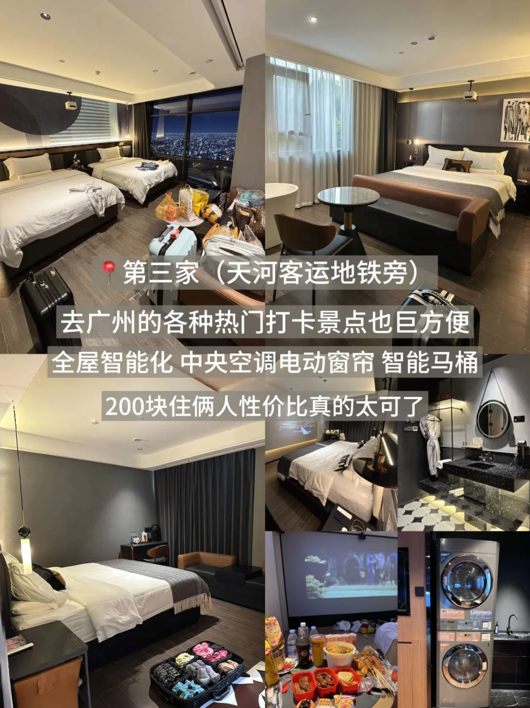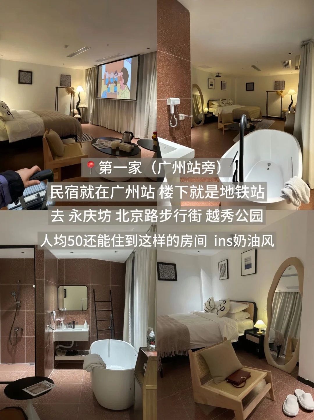 去广州加落地三天,挖到了很宝藏的酒店~ 1️⃣民宿就在广州站和白云站之间,楼下就是地铁站,到哪都很方便!去 永庆坊 北京路步行街 越秀公园 坐地铁都可以直达,十几分钟就可以到 2️⃣位置很不错!就在珠江边上,近广州塔地铁站,交通方便,去琶洲广交会或者珠江夜游都so easy!去其他景点也方便! 3️⃣就在天河客运站地铁站🚉出来几百米 去广州的各种热门打卡景点也巨方便! 这几家都是可以闭眼冲的!太好住啦!! - ⚠️在去哪儿旅行上订到的!真嘟要划算些~