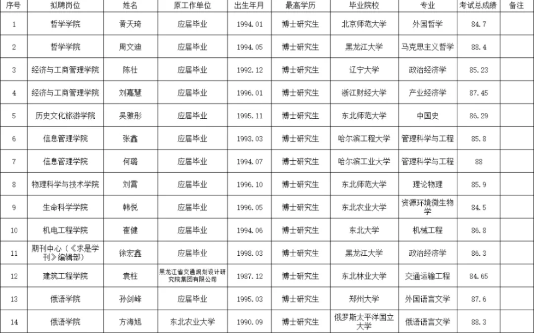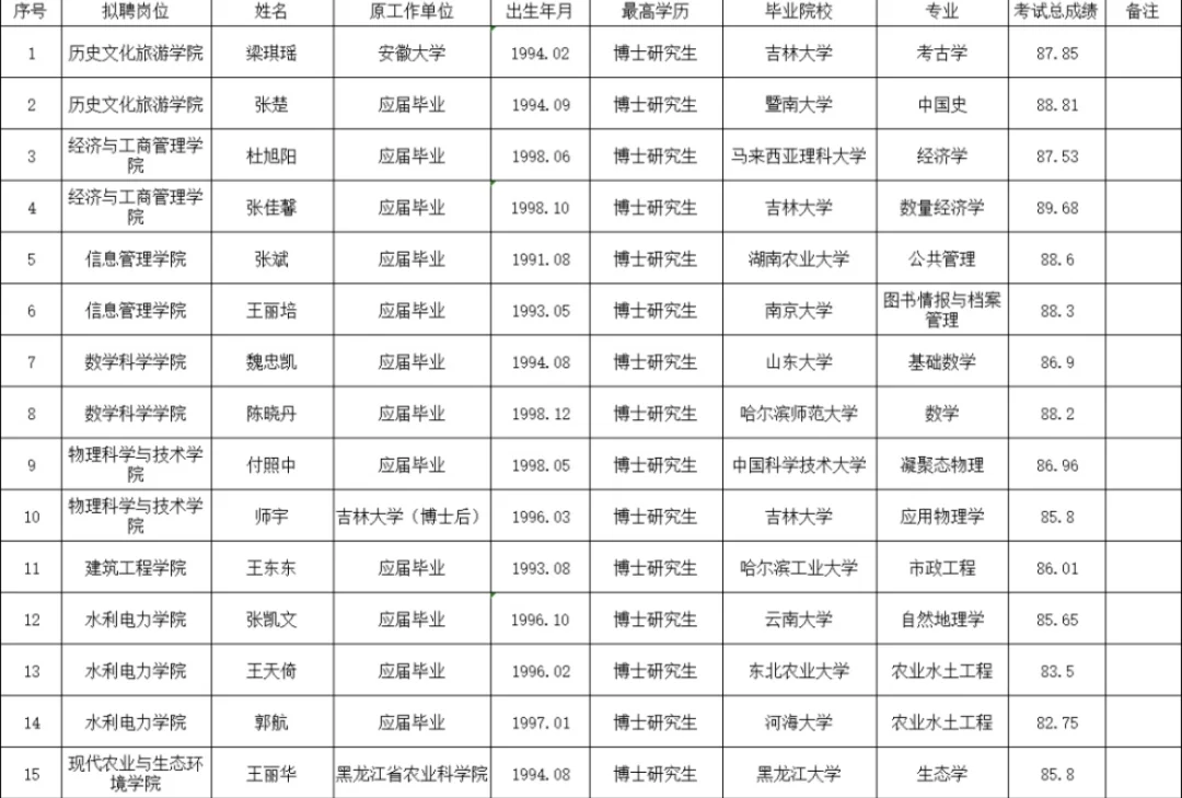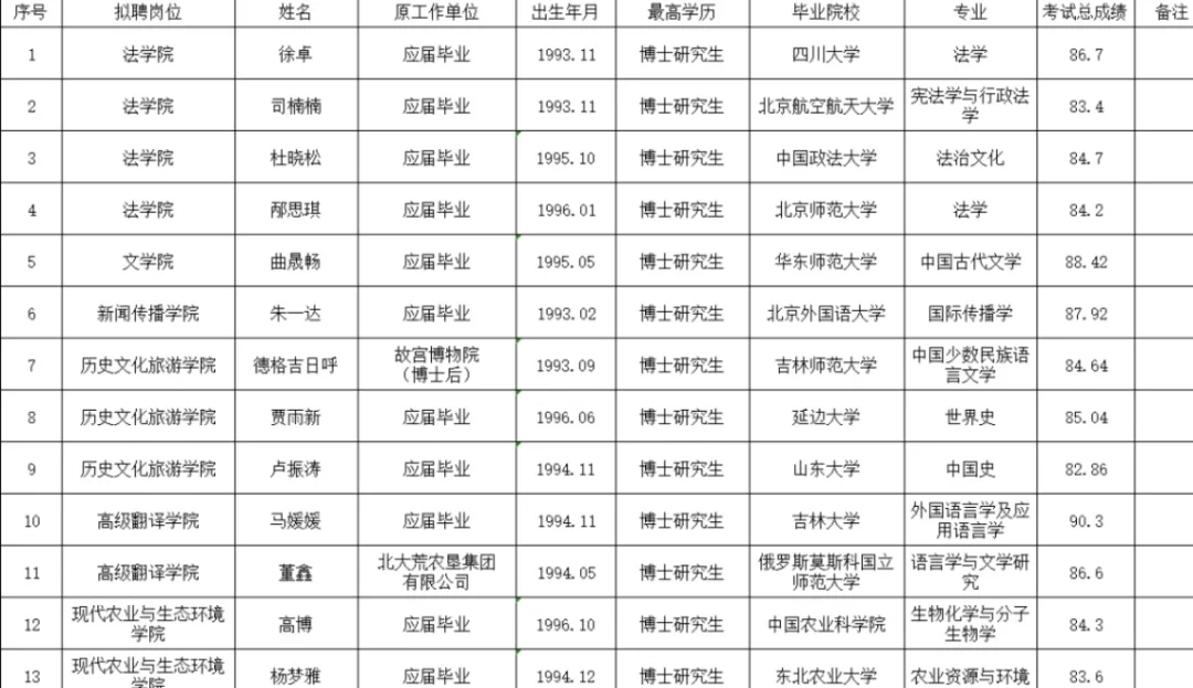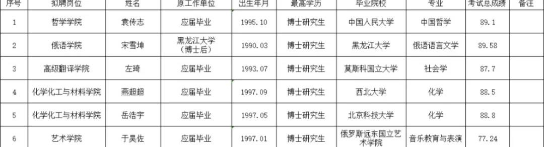 宁夏大学新录用教师公示