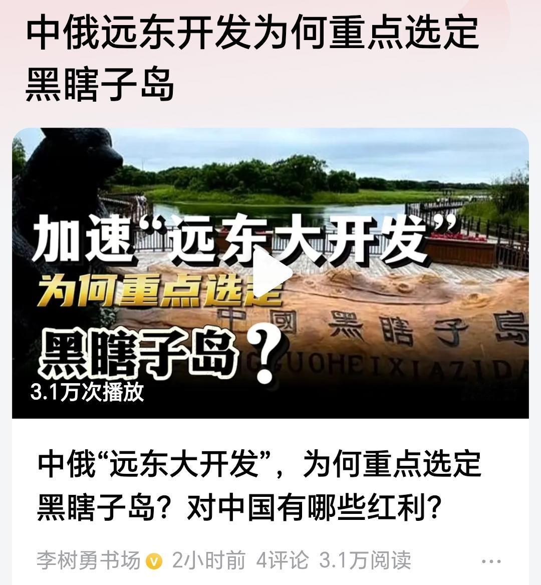 中俄合作远东开发,不选黑瞎子岛难道选海参崴?显然黑瞎子岛才是双方都愿意接受的结果