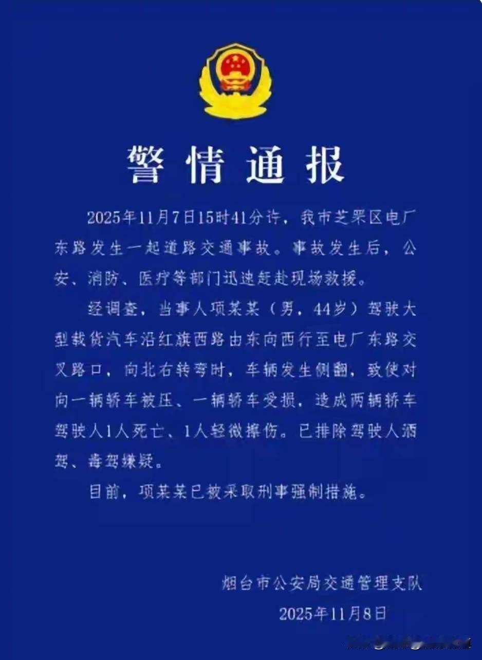 烟台渣土车侧翻压扁宝马车,夺命1死1伤!肇事司机已被控。 事发11月7日下午3点41分,山东烟台芝罘区电厂东路与红旗西路交叉口 当事人项某某(男,44岁)驾驶大型载货汽车沿红旗西路由东向西行至电厂东路交叉路口,向北右转弯时,车辆发生侧翻,致使对向一辆轿车被压、一辆轿车受损。 事故造成两辆轿车驾驶人1人死亡、1人轻微擦伤。警方通报显示,已排除驾驶人酒驾、毒驾嫌疑。 惊魂事故发生后,现场一片混乱。渣土车侧翻后沉重的车身与倾泻而出的碎块将一辆红色宝马车完全压在下而。 露出的车头受损严重,另一辆被压小车后车门被打开,多名过路群众正在紧急救援。 一位现场目击者回忆道:“一开始自己帮忙清理碎块,后来警察来到现场维持秩序,小车驾驶员被消防救援人员救出,送去医院抢救。” 救援人员与时间赛跑,但悲剧已经发生。目前,项某某已被采取刑事强制措施。 @法律有道 一,刑事责任方面: 根据警方通报,渣土车驾驶员项某某已被采取刑事强制措施,这意味着他可能面临交通肇事罪的刑事指控。 刑法中的交通肇事罪,规定的是违反交通运输管理法规,因而发生重大事故,致人重伤、死亡或者使公私财产遭受重大损失的行为。 在这起事故中,项某某的驾驶行为导致一人死亡、一人受伤,完全符合交通肇事罪的立案标准。 司法实践中,导致一人死亡或三人重伤,负事故全部或主要责任的,就会追究刑事责任。 量刑上,交通肇事罪的基本刑是三年以下有期徒刑或者拘役。 如果项某某有其他严重情节,如无证驾驶、严重超载、明知车辆安全装置不全等,刑罚可能会加重。 二、民事责任方面: 除了刑事责任,肇事司机及相关责任单位还需承担民事赔偿责任。 根据《民法典》规定,侵害他人造成人身损害的,应当赔偿医疗费、护理费、交通费等相关费用。 造成残疾的,还应当赔偿残疾赔偿金;造成死亡的,还应当赔偿死亡赔偿金和丧葬费。 在这起事故中,死者家属可以主张死亡赔偿金、丧葬费、被抚养人生活费等。 而受伤者则可以要求赔偿医疗费、误工费、护理费等实际损失。 三、渣土车安全管理警示: 这起事故再次引发对渣土车等大型车辆安全管理问题的关注。 渣土车因体积大、载重量高、盲区多,一旦发生事故,往往后果严重。 我国对大型载货汽车有严格的安全管理规定,包括定期车辆检验、载重限制、行驶路线规定等。 如果调查发现渣土车存在超载、车辆维护不当等问题,相关运输企业也将承担连带责任。