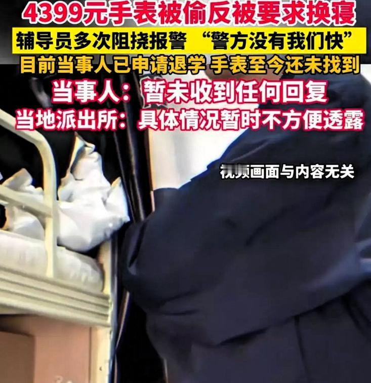 上海建桥学院彻底火了! 女生被偷4399元手表, 结果自己被逼退学! 小偷没被追责,受害者反而倒贴五千多,这操作真的让人看不懂! 事情说起来太气人了!这名女生刚入学没多久,随身的手表就不翼而飞,通过手表定位,最后精准锁定在新舍友的床上。换谁遇到这种事,都会第一时间想报警维权吧?可她刚提出报警,就遭到了辅导员的百般阻挠,甚至还被辅导员打电话质问“为什么要把事情闹大”。 更让人震惊的是,后来女生才得知,这位新舍友根本不是正常调宿,而是因为之前多次偷东西,才被调到她的宿舍!知道真相的她又气又怕,提出让有盗窃嫌疑的舍友搬出去,结果辅导员不仅不解决问题,反而用断电的恶劣手段逼迫她搬走,连赶来陪护的女生母亲都被强行撵走。 孤立无援的女生实在忍不下去,只能无奈选择退学,可校方还扣了她五千多元的费用,而那块被偷的手表,到现在都没找回来。受害者维权不成反遭打压,有盗窃前科的学生却安然无恙,这样的处理方式,实在让人寒心。 网友们看了都炸开了锅:“这辅导员到底胳膊肘往哪拐?”“保护小偷,惩罚受害者,这学校的规矩也太离谱了”“四千多的手表已经够立案标准了,为什么不让报警?”。正常来说,学生遭遇盗窃,学校本该积极配合调查,维护受害者权益,可上海建桥学院的做法,完全颠倒了黑白。 不知道这位辅导员是有私心,还是单纯想“息事宁人”,但用牺牲受害者权益来掩盖问题,只会让事情越闹越大。学校本是教书育人的地方,不仅要教知识,更要明事理、守公道。 受害者维权反被退学,盗窃者却逍遥法外,这样的处理结果真的合理吗?如果连学校都不能给学生公平正义,那学生的安全感又该从何而来?你们怎么看待这件事?
