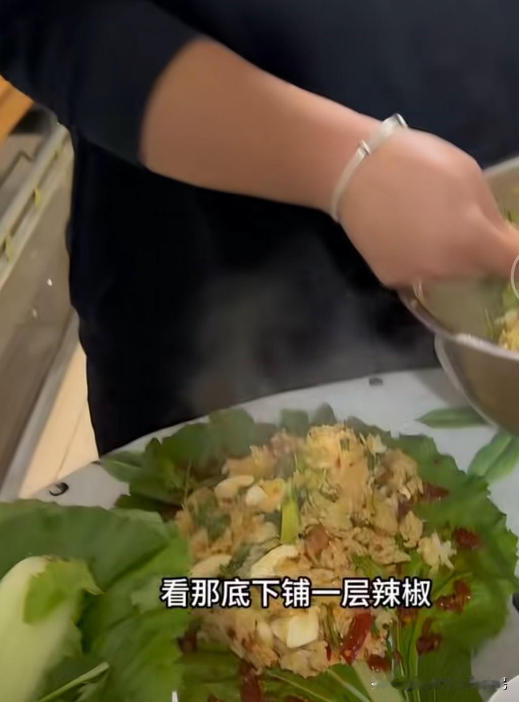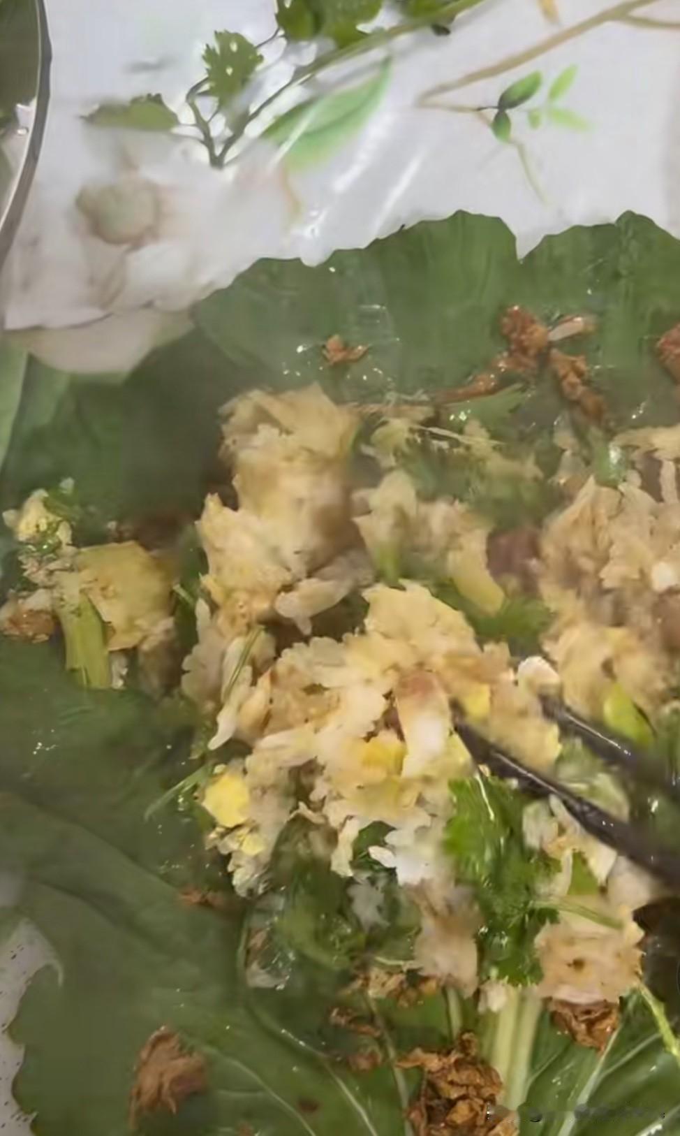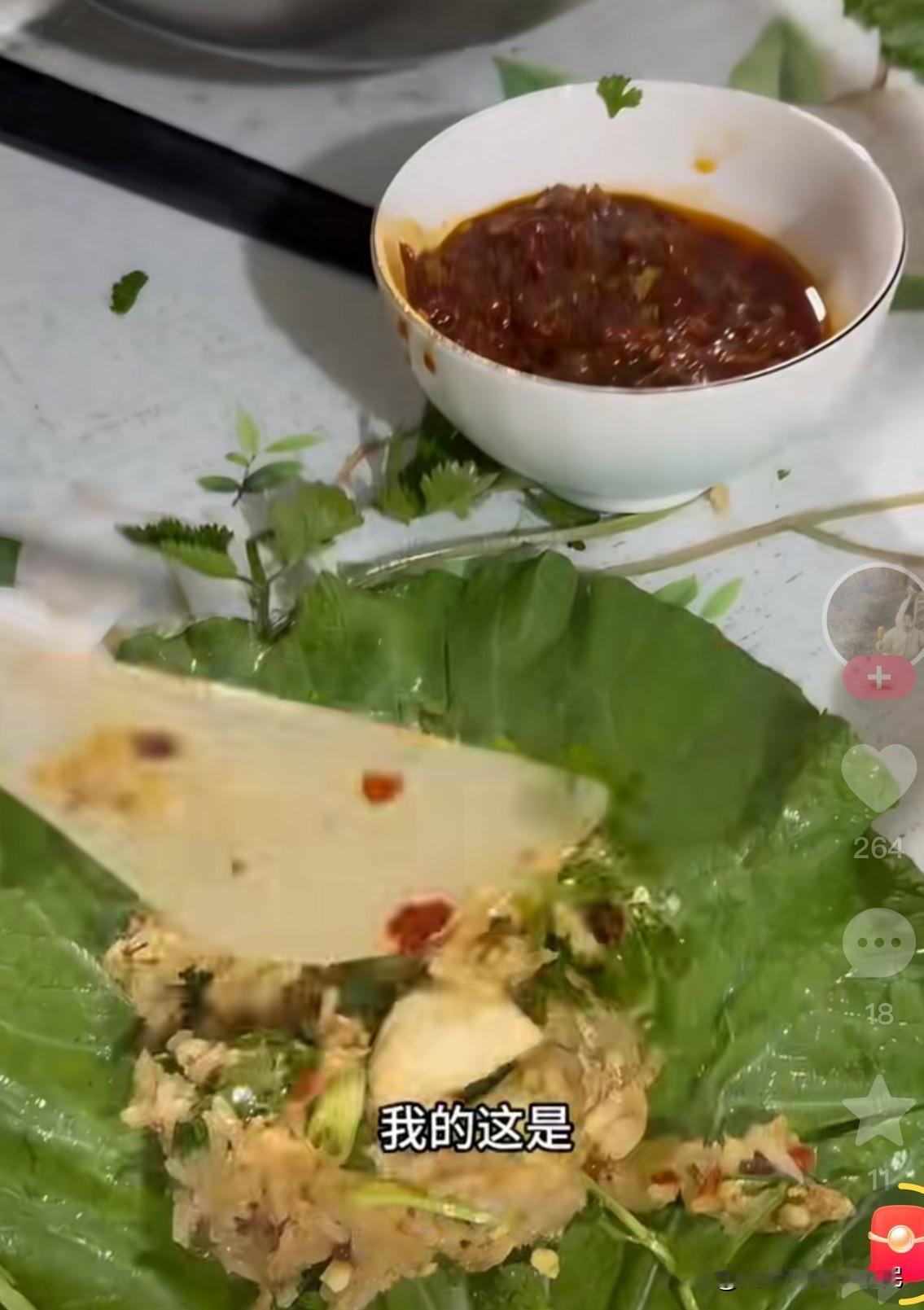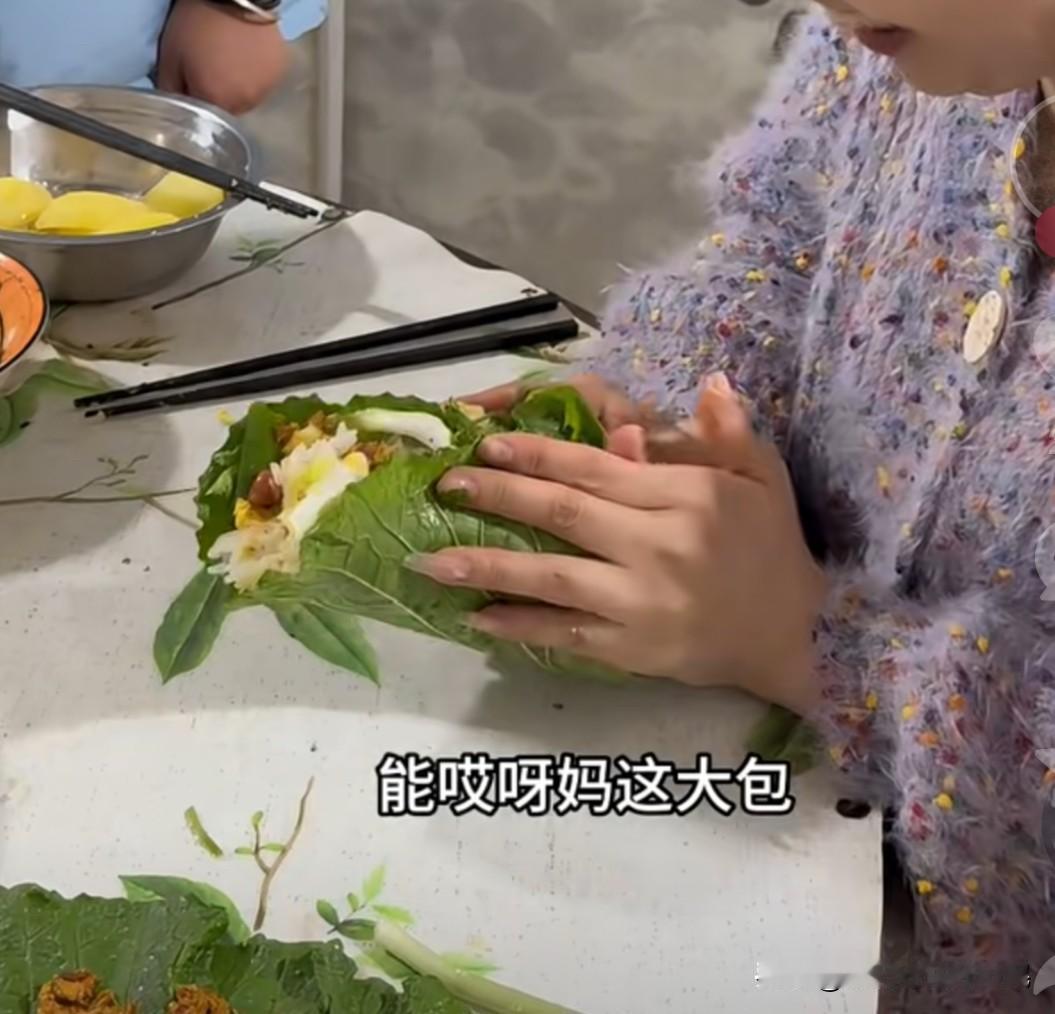总是看到“大饭包”这种食物,但是从来也没有吃过,看着是很丰富,仿佛可以包一切。 一片或是几片生的白菜叶子🥬 白菜叶子必须要大才行 蒸熟的米饭,还有蒸熟或是煮熟土豆(需要把熟你的土豆碾碎,碾成土豆泥) 鸡蛋酱,辣椒酱,煮鸡蛋,油炸花生米 还有其他的自己喜欢吃的东西 全程搅拌好后放进平铺的白菜上,然后卷起来,抱着吃,哎呀看着他们吃的是太香了。