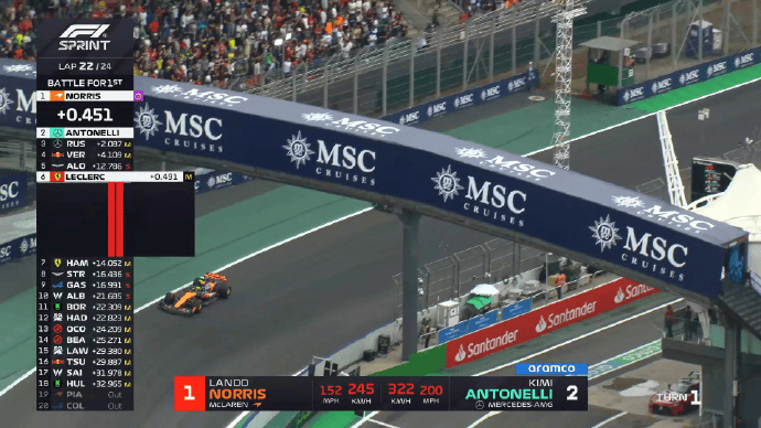 安东内利持续向诺里斯施压,勒克莱尔超越阿隆索上到P5;