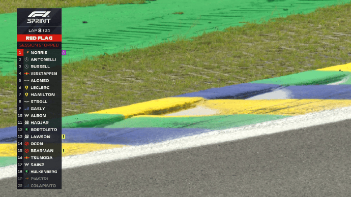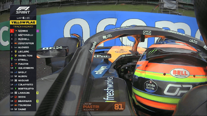 虎扑11月08日讯在刚刚结束的F1圣保罗站冲刺赛中,诺里斯全程领跑拿下冲刺赛冠军,安东内利和拉塞尔分列二三,维斯塔潘排在第四,勒克莱尔排名第五,阿隆索拿下第六,汉密尔顿位列第七,排在8-10名的分别是斯托尔,加斯利和哈贾尔。皮亚斯特里和科拉平托双双失误退赛并引发红旗。