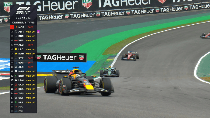 诺里斯、阿隆索、斯托尔、加斯利和阿尔本使用软胎,其他赛车都是中性胎;