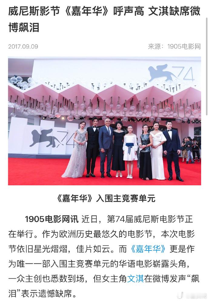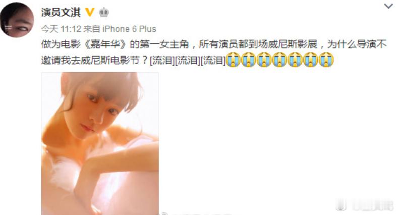 文淇曾被缺席威尼斯电影节 有网友考古发现文淇曾因为缺席《嘉年华》威尼斯首映而发微博[柯基]