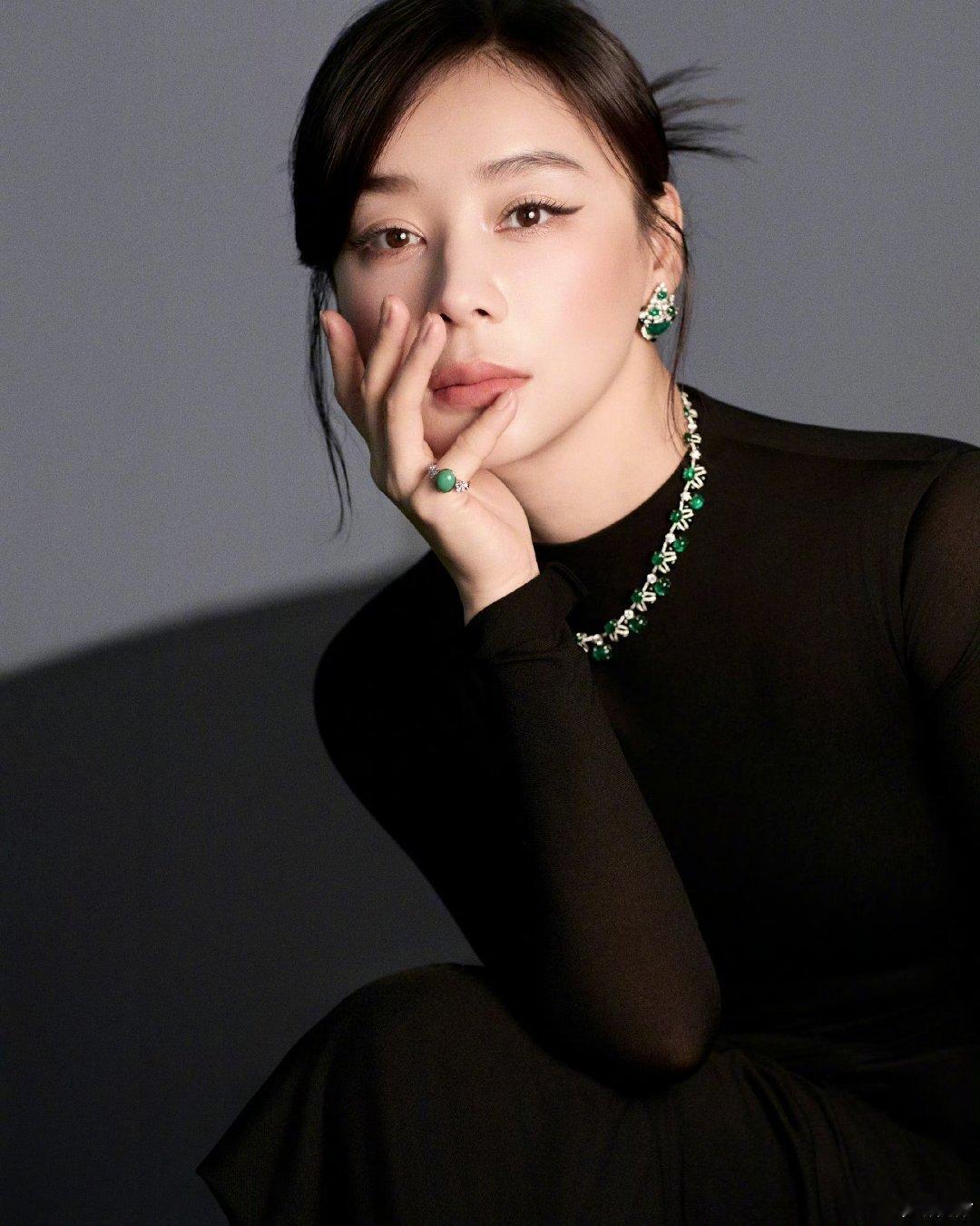 袁姗姗我那高智小姨回国了袁姗姗黑裙盘发造型释出!经典黑与祖母绿碰撞,完美勾勒优越肩颈线。镜头前她从容一笑