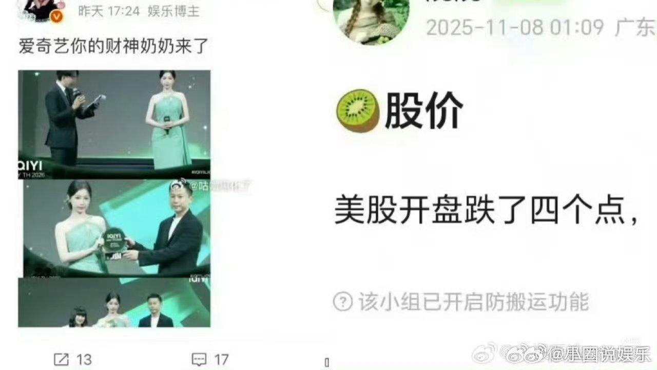 更绝的是,官宣刚过没多久,爱奇艺股票直接一片绿,暴跌得那叫一个惨兮兮!网友都调侃“这哪是代言人,这是来给爱奇艺送温暖(送绿)的吧”,只能说内娱活久见,这连锁反应也太魔幻了,现在瓜田里的猹都快忙不过来了!
