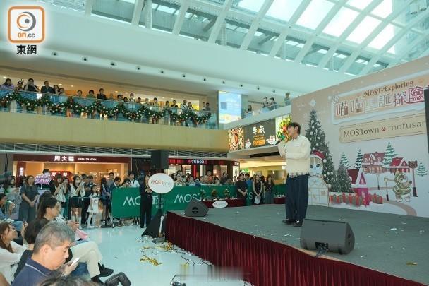「聲夢小花」鍾柔美(Yumi)、詹天文(Windy)和英皇歌手曾傲棐(Arvin)今日現身馬鞍山MOSTown新港城中心xmofusand的「MOST-Exploring喵喵聖誕探險記」擔任揭幕嘉賓,吸引數百途人圍觀。