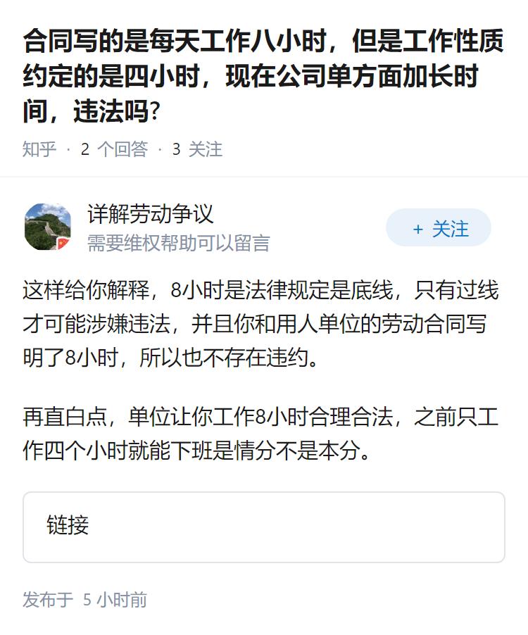 合同写的是每天工作八小时,但是工作性质约定的是四小时,现在公司单方面加长时间,违法吗?