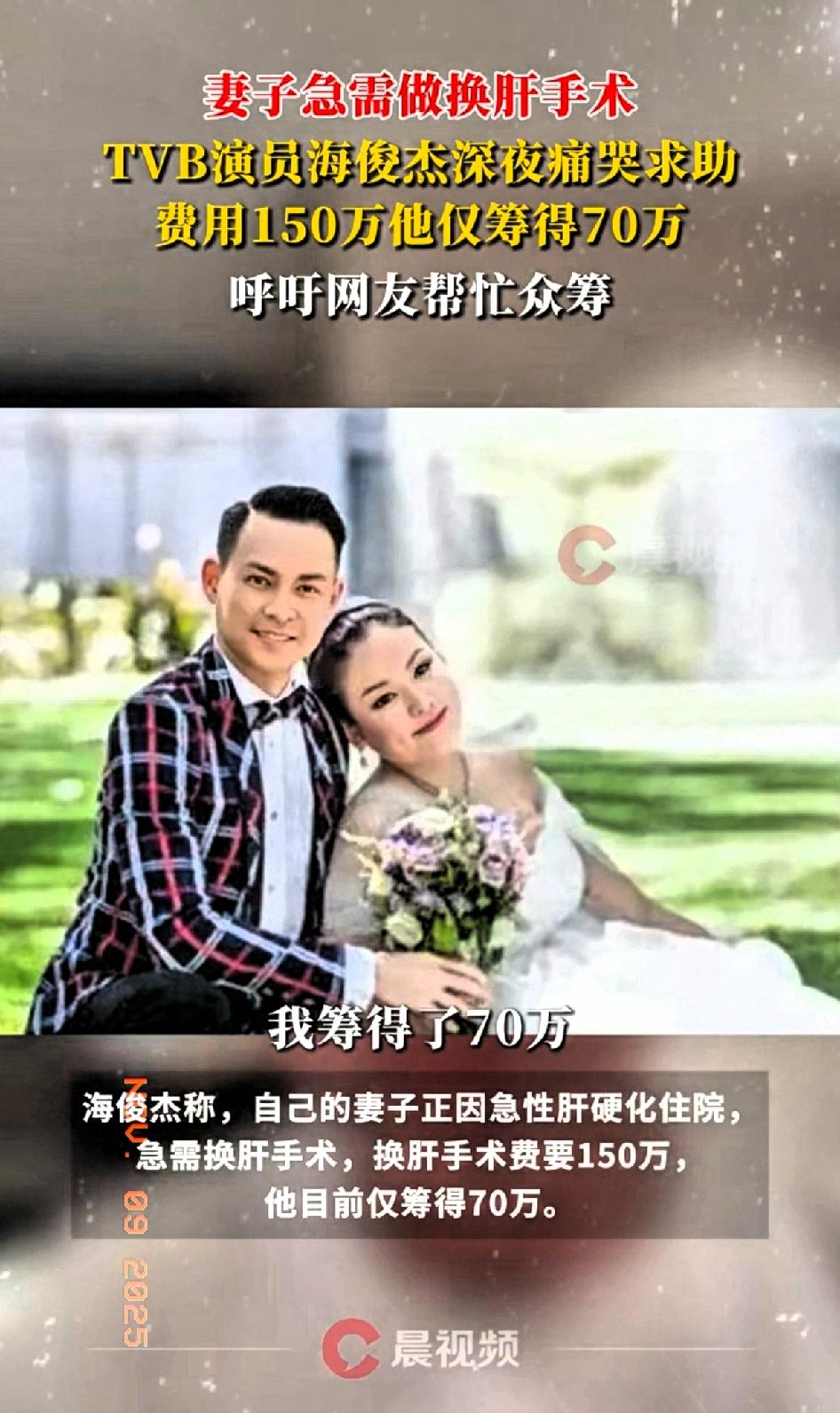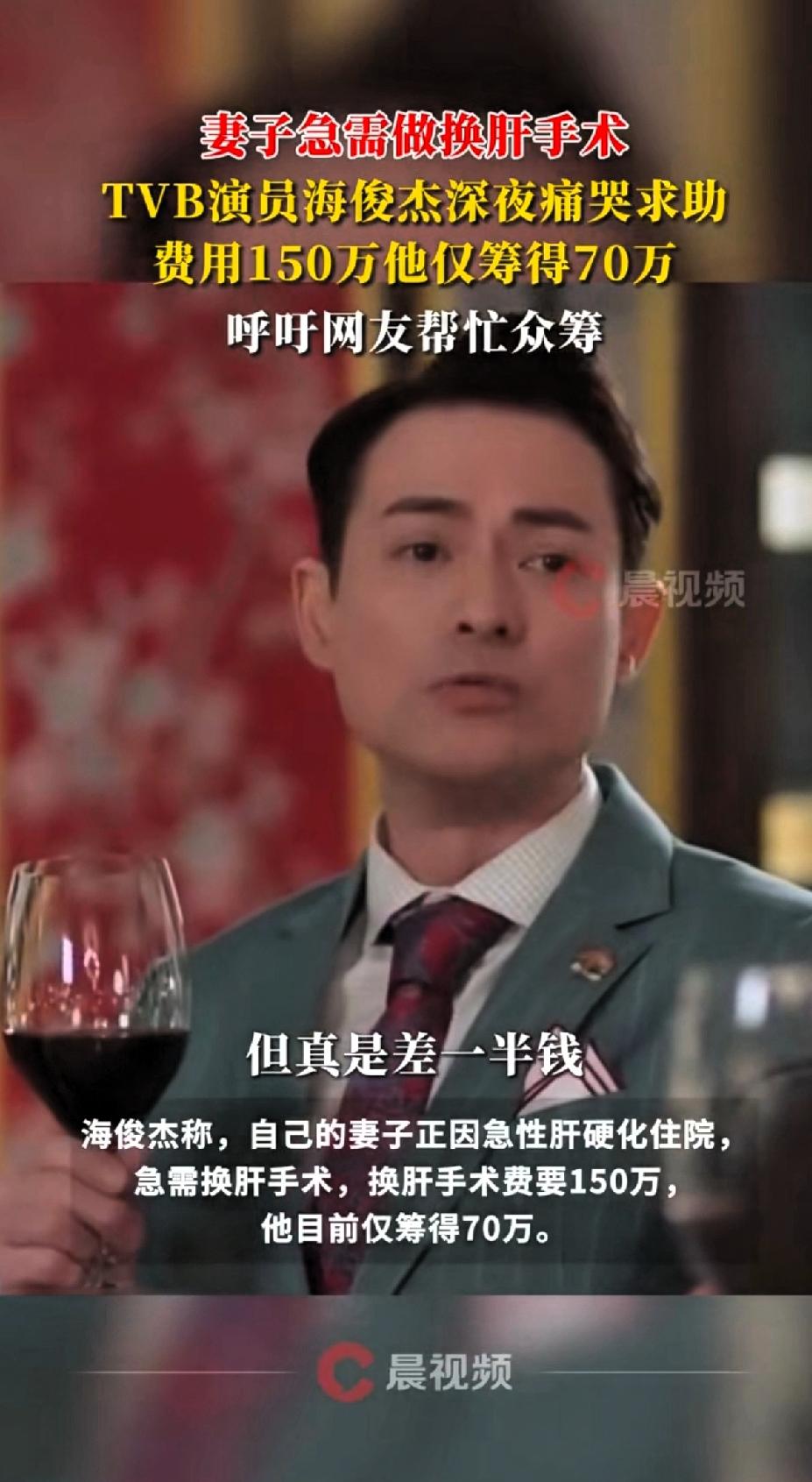 香港TVB演员海俊杰深夜痛哭求助,妻子急需换肝做手术,所需费用150万港币,他仅