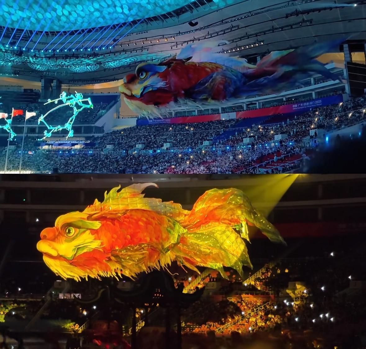 全运会开幕式的鳌鱼灯,亮灯前如水墨画,亮灯后更是梦幻到失语…… 熬到全运会正式开幕,忍了好久的彩排人员纷纷放出彩排时拍下的视频,这个众人合力守下的秘密,终于在今天惊艳世人。 据悉,鳌鱼灯有独占鳌头,鱼化成龙的美好寓意,是传统民俗里极为重要的“好彩头”。