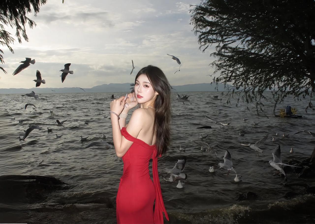 她身着一套白色西装短裙,宛如一颗耀眼的明珠。白色西装剪裁精致,彰显着她的自信;短