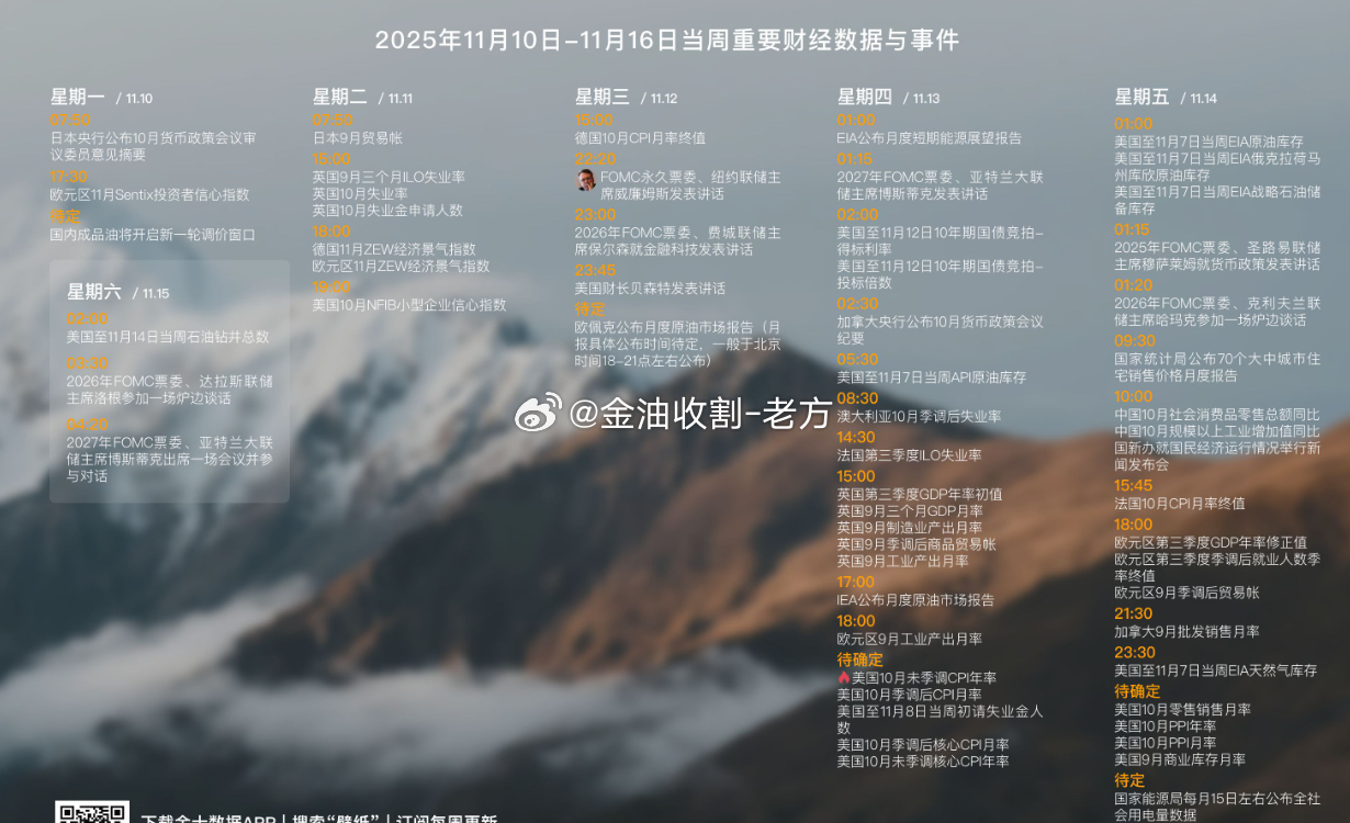 以下是本周所有重点数据,有在交易的朋友可以多多参考