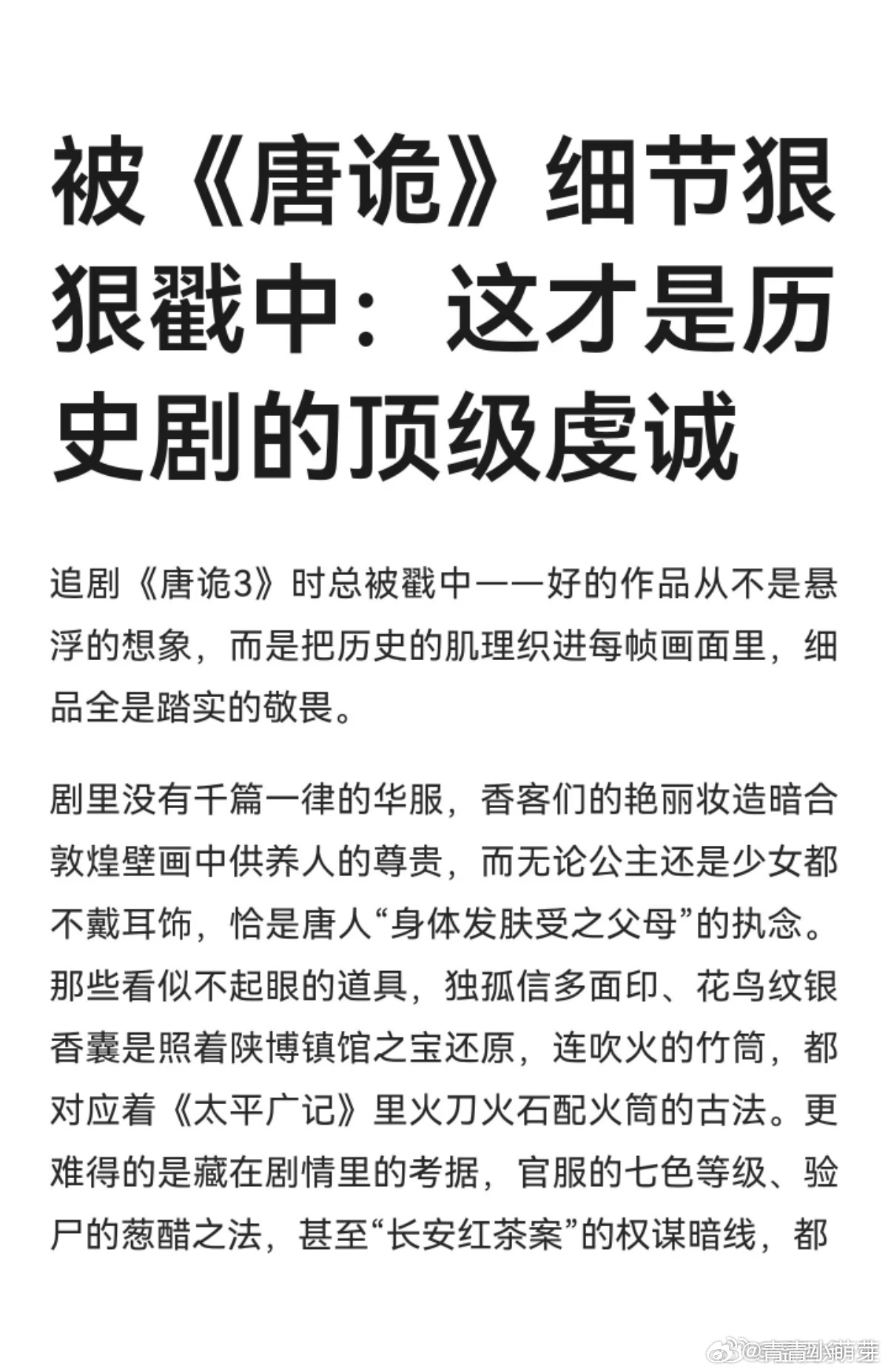 唐诡3就差把知识喂到嘴里了《唐诡3》可太有趣,像个知识小宝库。从案件到服饰建筑,满满的唐朝历史文化,追剧就像被知识投喂,感觉自己变聪明啦~😎