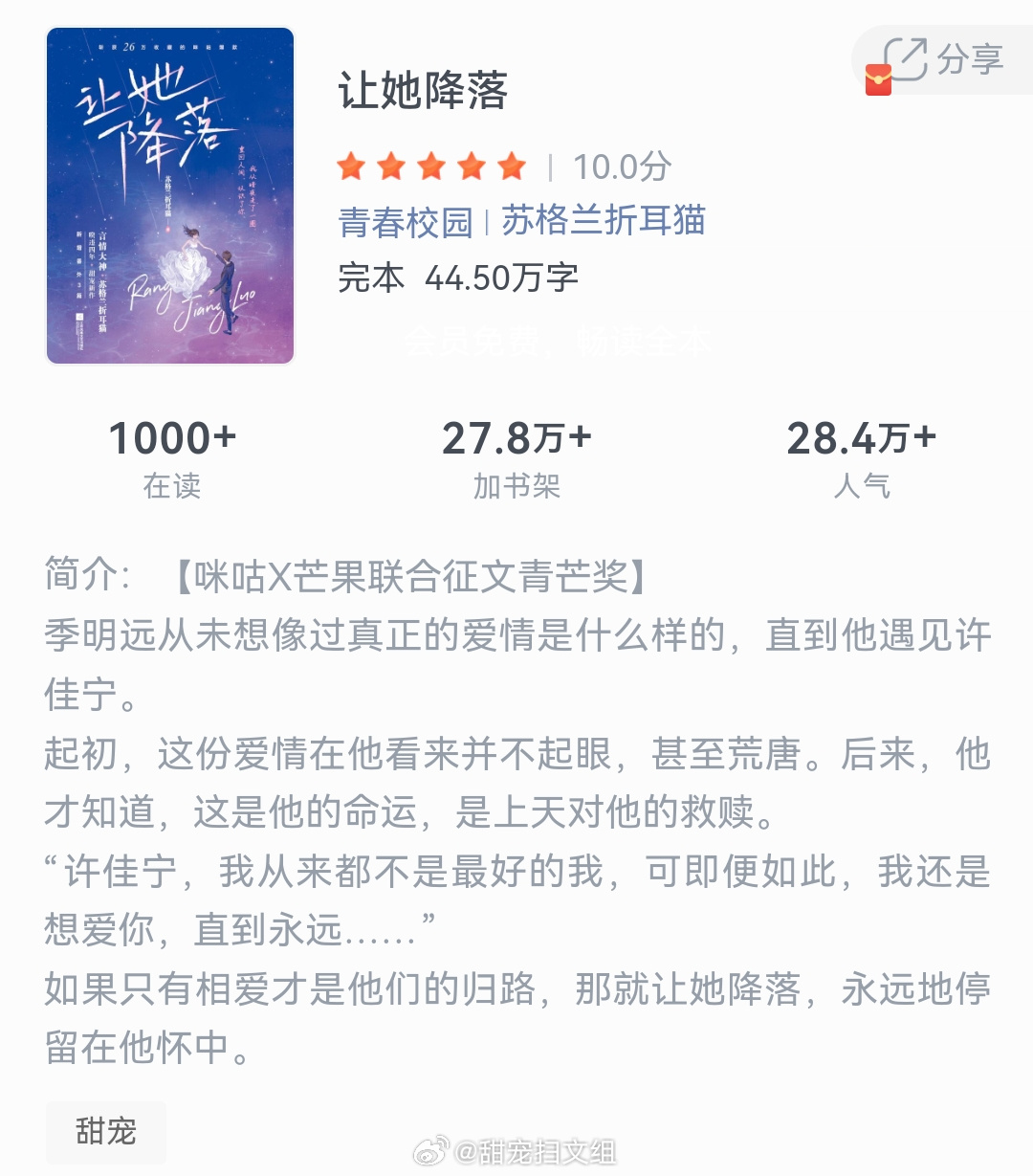 《让她降落》作者:苏格兰折耳猫