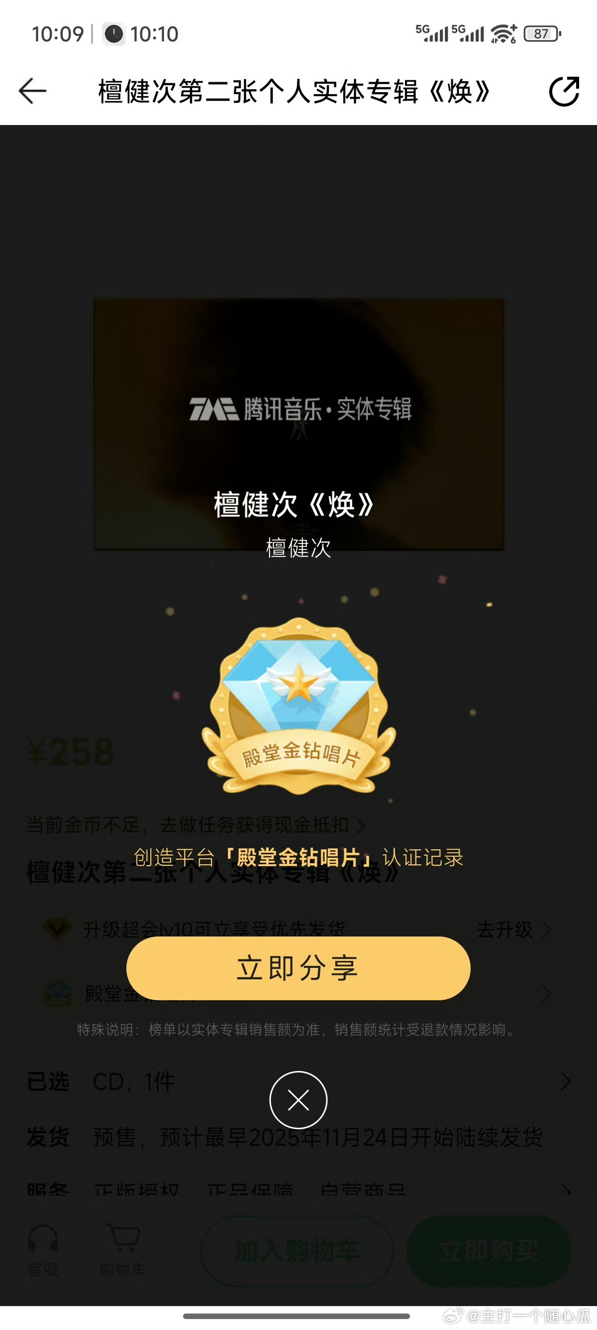 檀健次第二张实体专辑《焕》开启预售,4分钟拿下殿堂金钻唱片1500w,牛[赞]