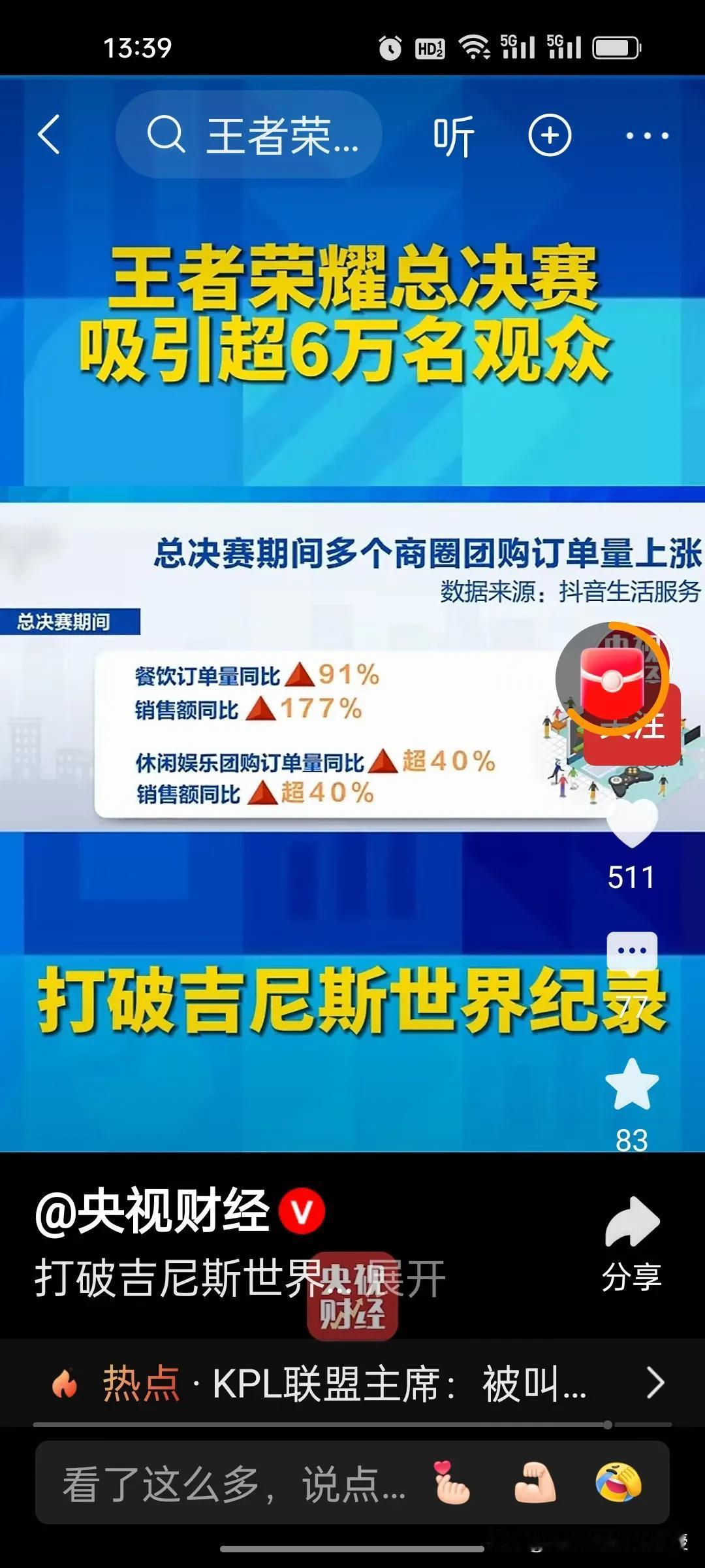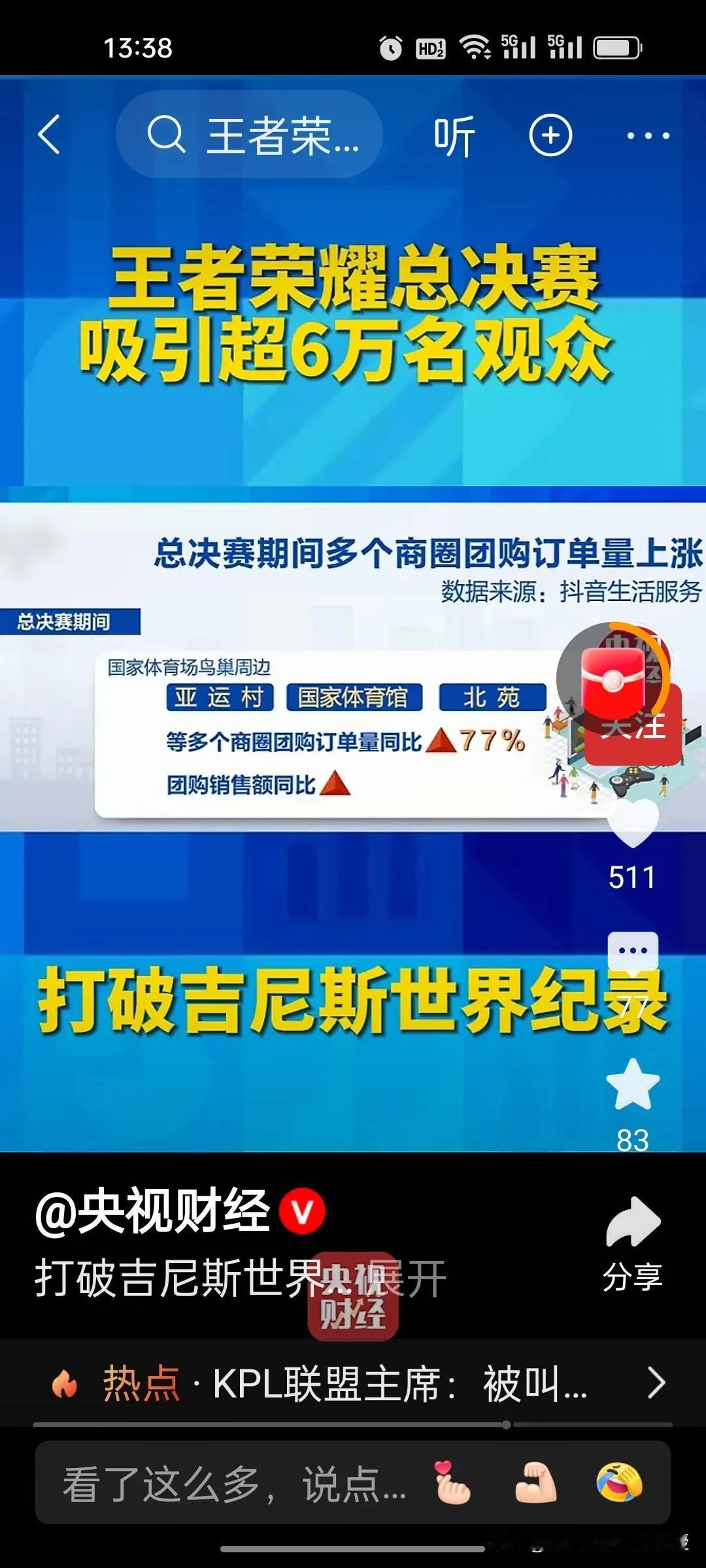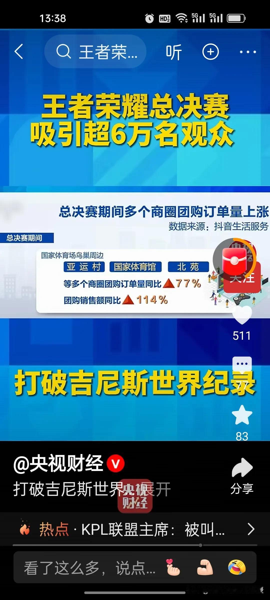 《王者荣耀》在部分家长眼里是孩子学习不好的“元凶”,可是一点不妨碍其在国际市场的地位。 根据《央视财经》报道,王者荣耀职业联赛年度总决赛吸引力超过6.2万名观众,12秒票都售罄,还有澳大利亚,越南,泰国等世界各国的观众前来观赛,成功挑战吉尼斯世界纪录,北京国家体育馆鸟巢周边的团购商单销售额上涨144%,娱乐休闲订单上涨40%。 谁也没想到,一场《王者荣耀》电竞比赛竟然对服务业的促进作用这么大,从全球2.6亿月活用户的全民热度,到电竞生态撬动的万亿级产业潜力,这场多方共赢的消费热潮,妥妥见证腾讯推出《王者荣耀》这十年来确实是大赢家。