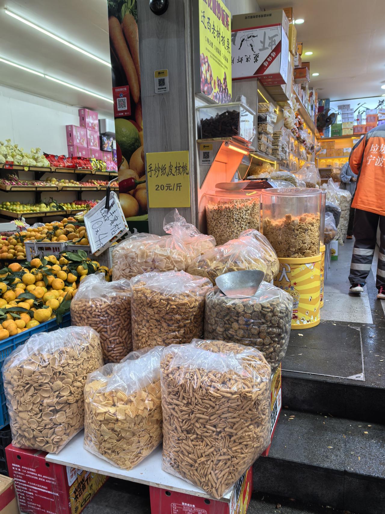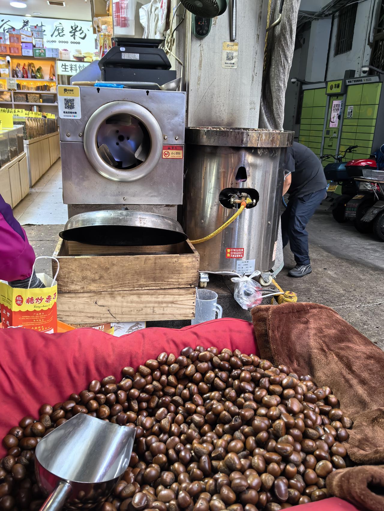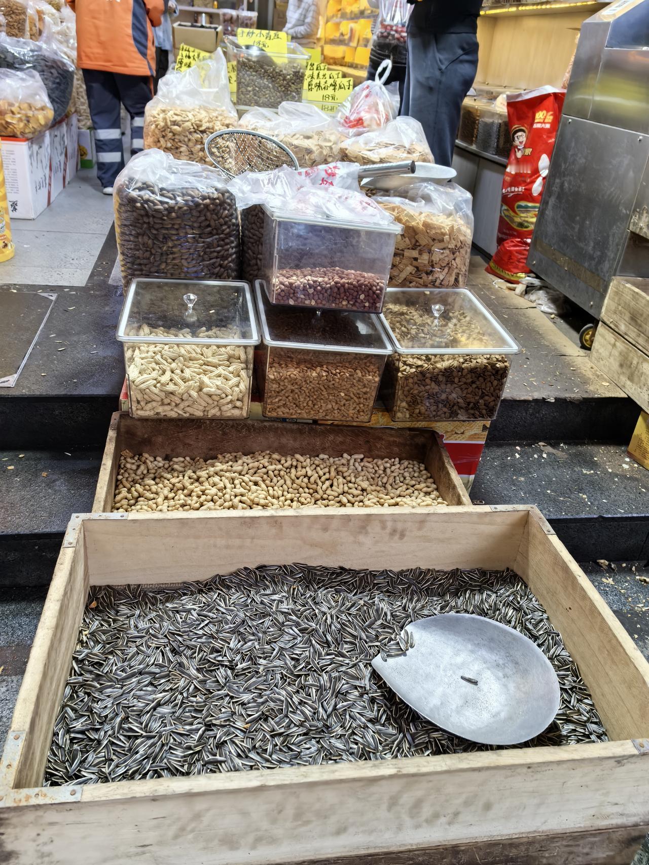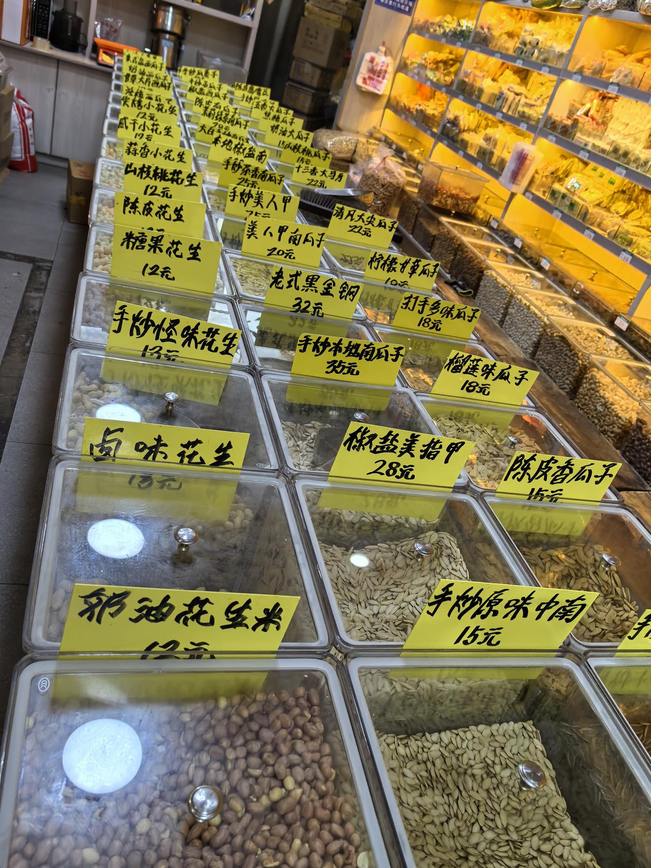 小时候盼着过年的其中一个理由就是实现零食自由,这个零食包括瓜子花生,米花糖,江米条,爆米花等。我和哥哥们的兜里揣得满满的,边走边吃。吃得不消化上火了,母亲就给我们煮一锅酸酸甜甜的柿饼山楂汤,开胃解腻,那时真是缺嘴啊。 今天在菜场看到一家炒货店,里面琳琅满目的零食,瓜子花生的口味就有几十种,你能想到的炒货零食都有,眼花缭乱的。我买了茶香南瓜子,原味花生,年糕干,还买了一斤刚出锅的桂花糖炒栗子,才十元钱一斤,其他地方都是二十元一斤,所以排队买的人很多。 生活在物质丰富的时代真是幸福。