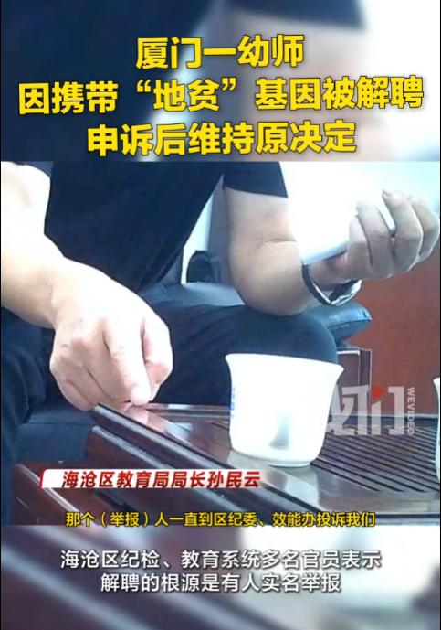 福建厦门,一女幼师好不容易应聘上一所学校,却因携带地中海贫血基因,被前夫实名举报,导致女子被解聘。女子坚称自己只是基因携带者,并没有不适症状,也不影响工作,而且自己是单亲妈妈,需要工作来养孩子,但教育部门仍坚持了解聘决定。(来源:我们视频) 据悉,女子小林毕业后就在一家幼儿园实习过,被孩子们天真无邪的笑容感染,从此铁了心要成为一名优秀的幼师。 为了考上编制,她一边照顾双胞胎女儿,一边挤出时间学习。经过不懈努力,小林顺利通过了笔试、面试,三次体检也都合格,终于在2024年8月成为了一名在编教师。 然而小林的努力在其前夫看来,就是不可容忍的,他的理想就是小林在家相夫教子,每月给小林一些零花钱即可。但小林接受不了这样的生活,所以二人最终离了婚。 自从离婚后,这个前夫就一直举报小林是β型地中海贫血基因携带者,不符合录用条件。 在持续举报了半年后,教育部门认定地中海贫血属于血液系统疾病,根据《福建省教师资格申请人员体检标准》,小林的体检是不合格的,于是解除了与小林的聘用关系。 由于前夫的举报,现在导致小林无法从事教师行业,算是在教师行业彻底被封杀了。 小林自然不打算妥协,她向有关部门进行了申诉,并主张在争议期间,单位不得办理编制核减、社保停缴等,然而这个申诉很快被驳回了。 小林现在完全不知道自己该怎么办,她不理解为何自己只是疾病的携带者,就要遭遇如此的不公待遇。想到还有嗷嗷待哺的孩子,小林不知道哭了多少次。 有医学专家表示,携带者不应简单归于病人,而且在考编时的体检医院也确认小林的体检是合格的。 有部分网友表示,已经携带基因了那谁知道会不会传染,不能用孩子们的健康安全来赌啊。 还有网友表示,教育部门也是按规矩办事,以确保牺牲小利益,保存大利益,这在大是大非面前没有错。 《福建省教师资格申请人员体检标准》第3条规定,血液系统疾病,不合格。单纯性缺铁性贫血,血红蛋白男性高于 90g/L、女性高于 80g/L,合格。 地中海贫血属于血液系统疾病,似乎符合解聘依据。但问题的关键在于,小林只是基因携带者,并非患者,且多次体检均显示不贫血,身体状况完全符合正常工作要求。 在这种情况下,教育部门选择与小林解聘,这就会导致小林当地将不再有单位愿意录用小林。 有人认为教育部门涉嫌基因歧视,是指基于基因信息而给予不公平对待的行为。 《就业促进法》第30条规定,用人单位招用人员,不得以是传染病病原携带者为由拒绝录用。但是,经医学鉴定传染病病原携带者在治愈前或者排除传染嫌疑前,不得从事法律、行政法规和国务院卫生行政部门规定禁止从事的易使传染病扩散的工作。 由此可见,除非是传染病,才需要限制从事某些领域的工作。 地中海贫血是一种遗传性疾病,并非传染性疾病,且小林之前几次体检都十分正常,也没有证据证明该疾病会影响小林的从教。 因此,教育部门如此果断的与小林解聘,到底是受不了小林前夫的频繁举报,还是说另有其他目的? 据悉,《广东省教师资格申请人员体格检查标准》第2条规定,只有严重血液病的,才算不合格;单纯性缺铁性贫血,Hb≥90g/L,女性高于80 g/L,合格。 《浙江省教师资格认定体检标准及操作规程》中明确规定,血压超过18.66/12kpa(140/90毫米汞柱),低于11.46/7.46kpa(86/56毫米汞柱)。单项收缩压超过21.33kpa(160毫米汞柱),低于10.66kpa(80毫米汞柱),舒张压超过12kpa(90毫米汞柱),低于6.66kpa(50毫米汞柱),为体检不合格。 由此可见,福建省的周边省同样有相关的体检标准,但他们的规定都十分的科学和人性化,充分考虑了基因携带者与实际工作能力之间的关系。 对此,您怎么看?欢迎留言交流。