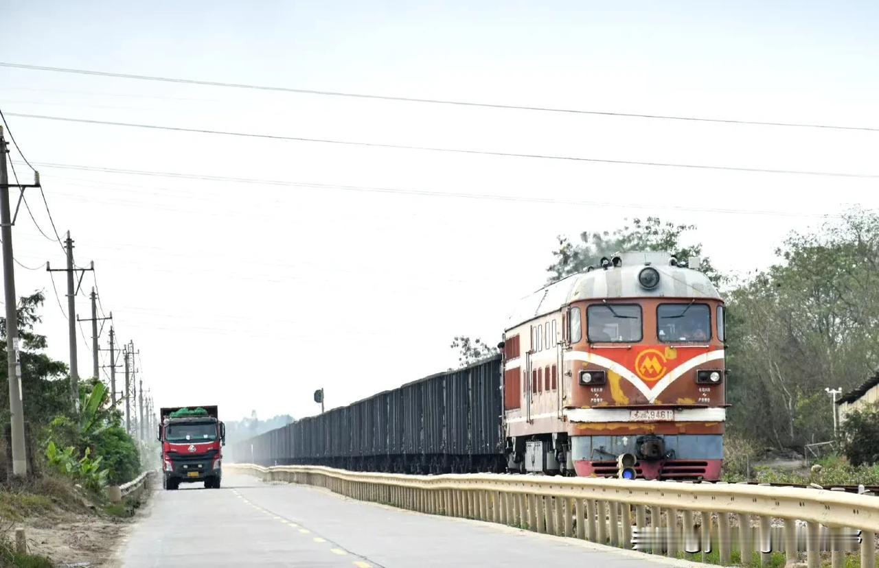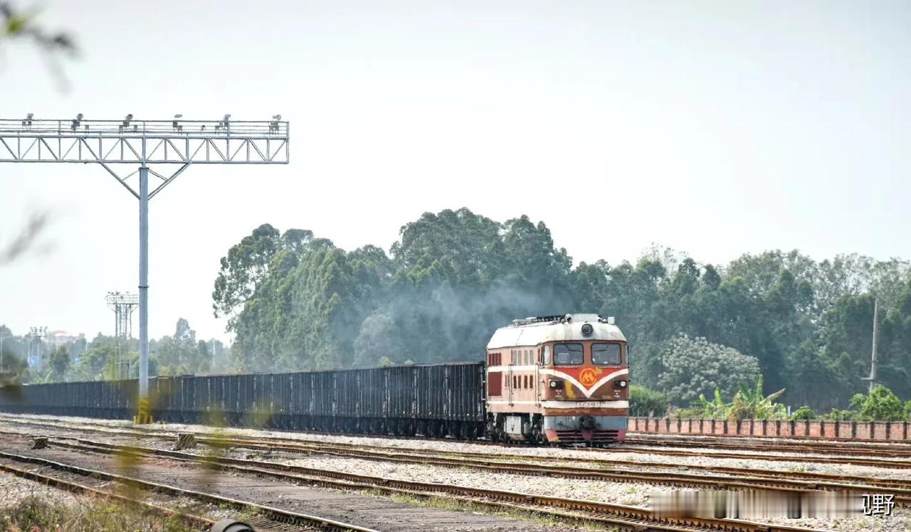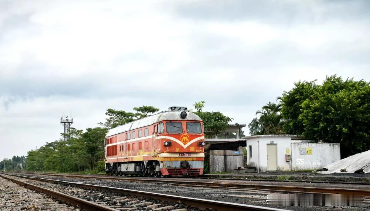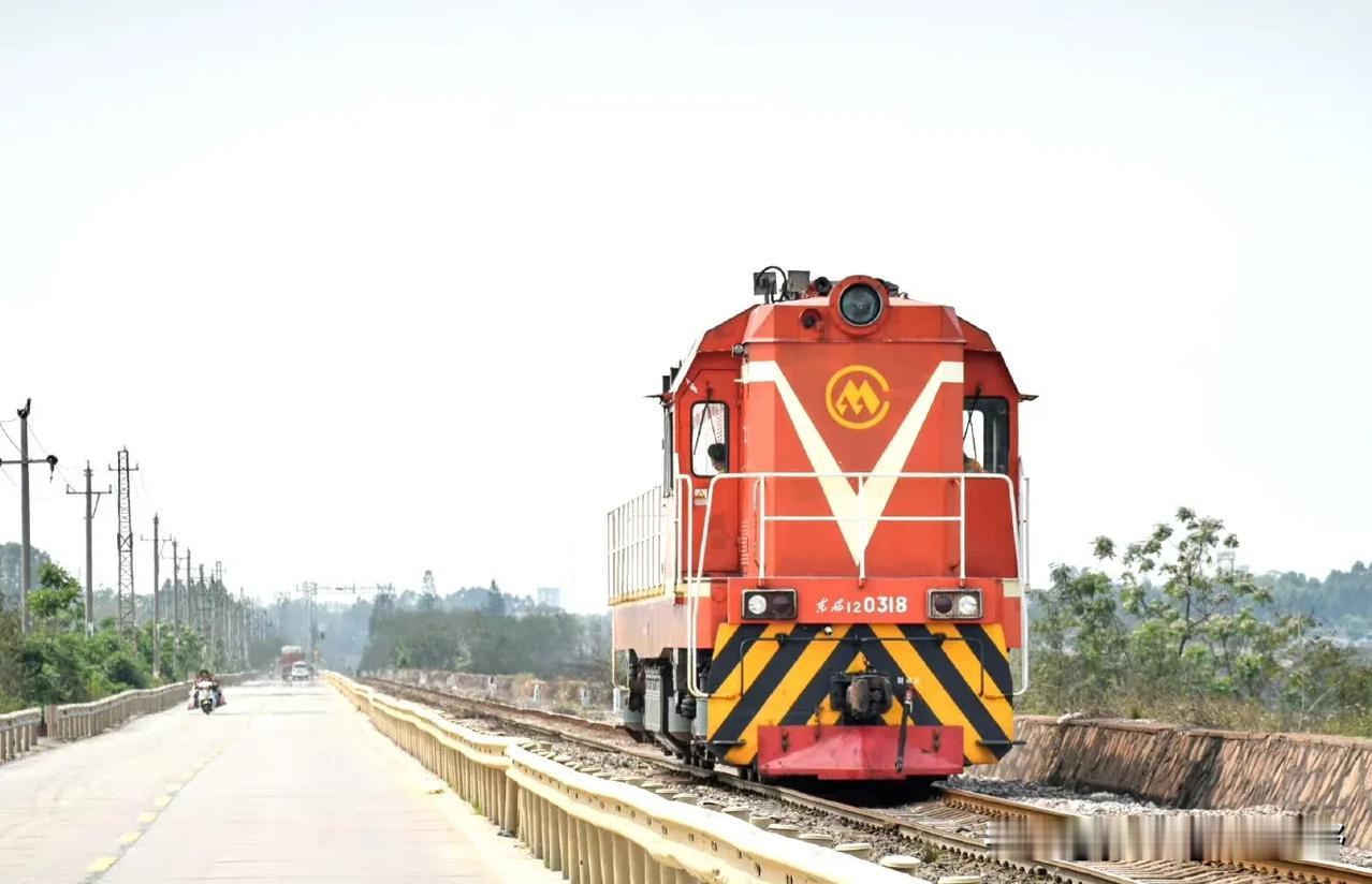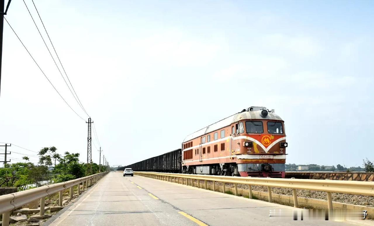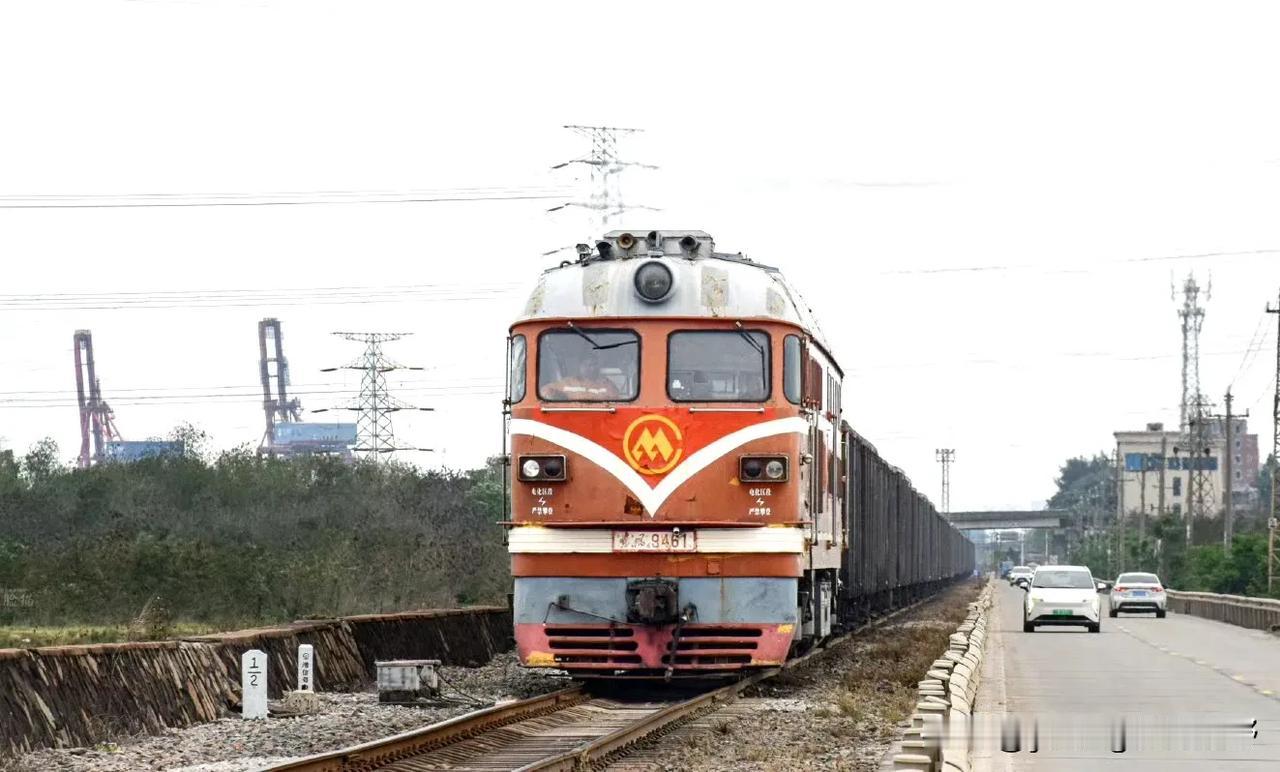 湛江的一条鲜为人知的铁路与相对另类的火车们。这就是位于湛江赤坎区的调顺港支线铁路,线路从黎湛铁路的塘口站引出,直接通向调顺岛,是一条运输矿产材料的货运铁路。在这条铁路上,有着比较特别的内燃机车,就是属于港务局的特色涂装的橘子,东风4B内燃机车和东风12内燃机车。不同于国铁的机车,机车的车身上没有中国铁路的LOGO,取而代之的则是港口的标志。并且机车的保养程度明显也不如国铁,看着显得比较埋汰。但这条铁路也有他比较个性的特点,比如中途有一段在海堤上的路段,是公路与铁路并行的,所以也经常可以看到汽车与火车和海湾同框的场景,可以说,有点像过去的老鹰厦铁路,过厦门海堤的场景。不过这几年,似乎这条专用铁路上的货物列车也有了减少的趋势,再加上调顺岛逐渐的被市区化,可能未来这条铁路也会面临拆迁的结局?