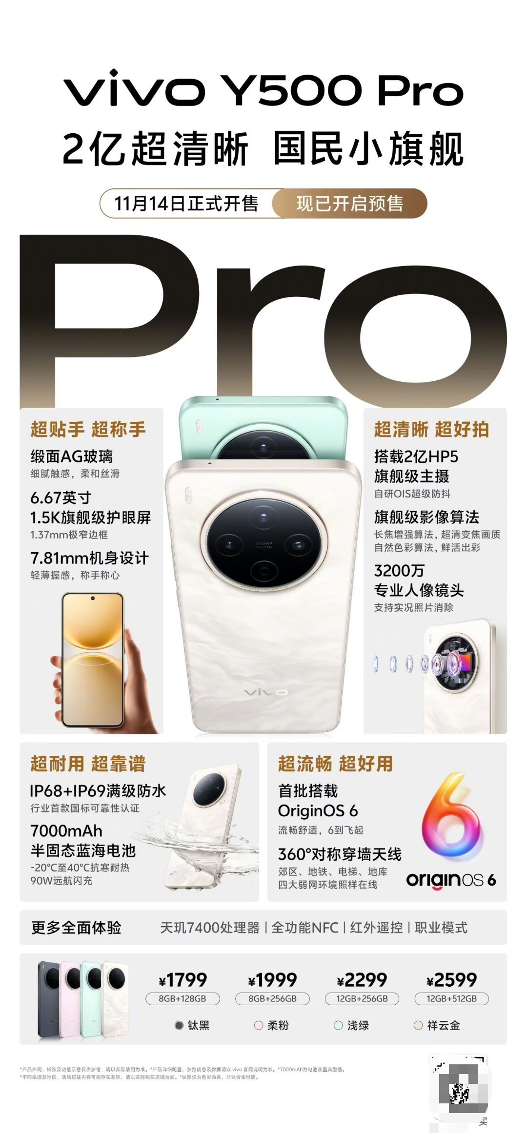 vivo Y500 Pro 正式发布,产品配置一图读懂!