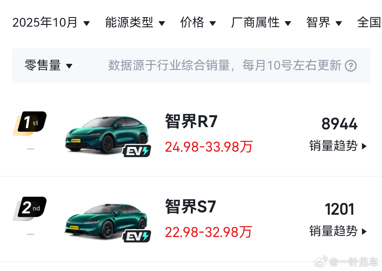 上个月智界也挺猛,零售量口径智界R7超过8900台,加上S7破万了。今年先稳住,明年要干票大的[doge]