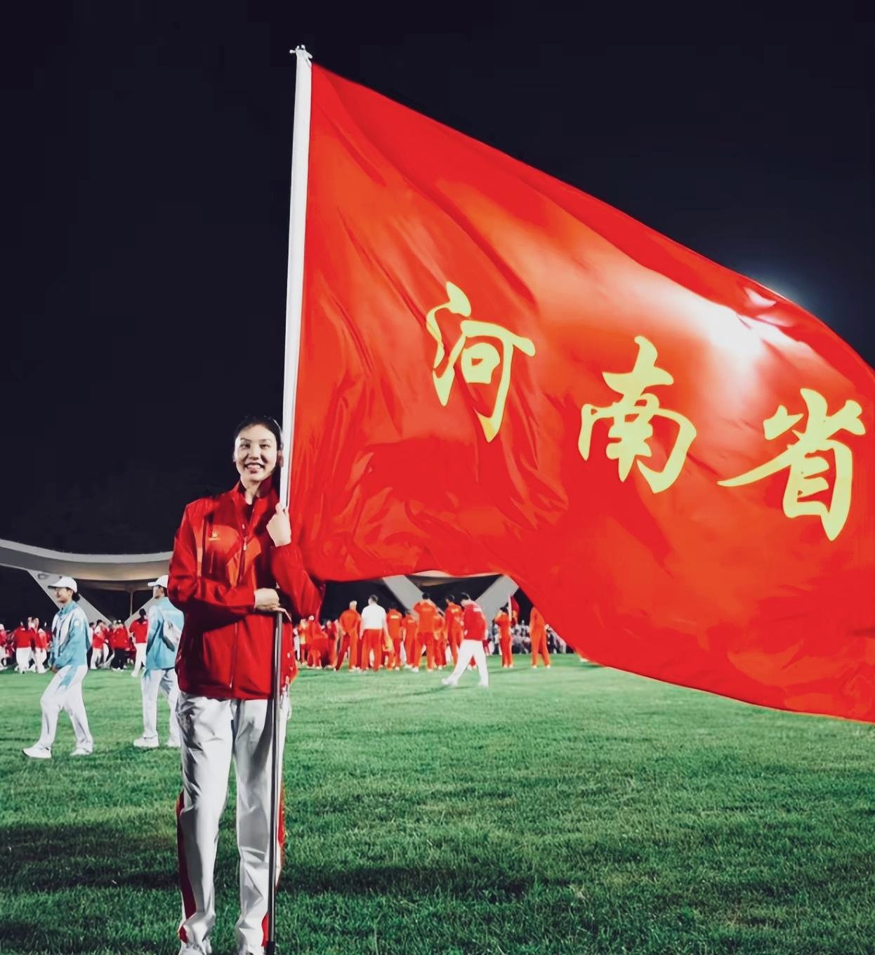 15届全运会开幕那晚,河南代表队的旗手是中国女篮的张茹。首次当旗手是不是感觉很美…
