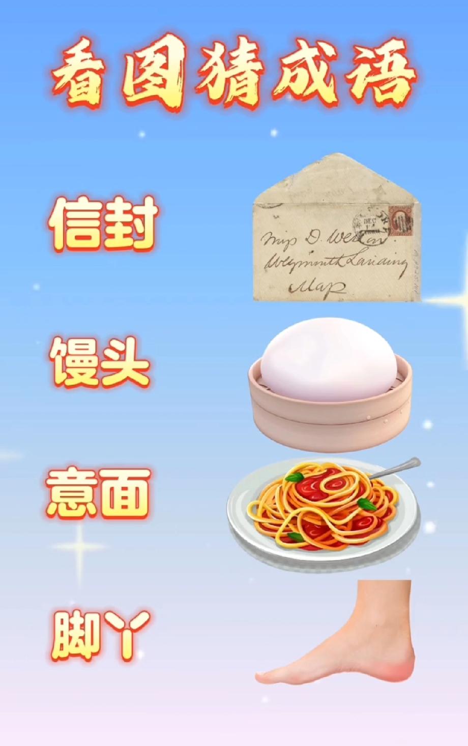 这题我直接懵了!信封+馒头+意面+脚丫,到底是啥成语?评论区大神快救我!
