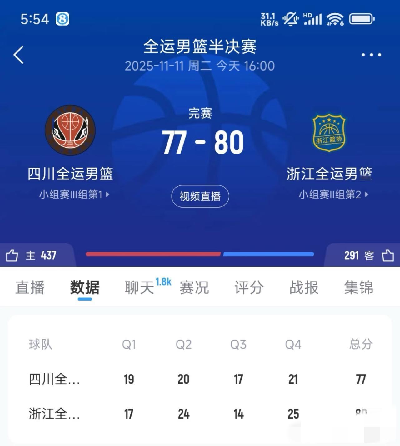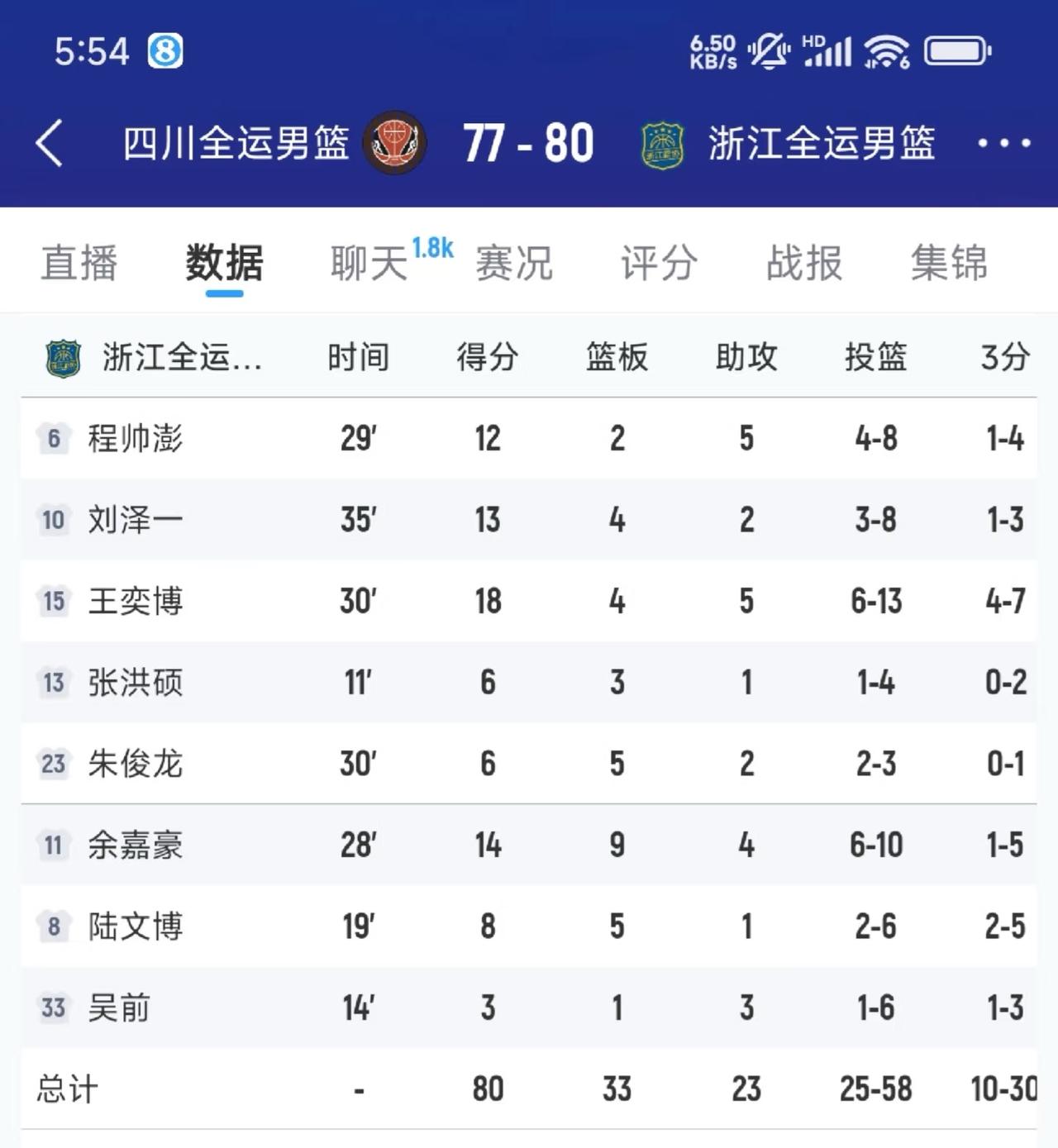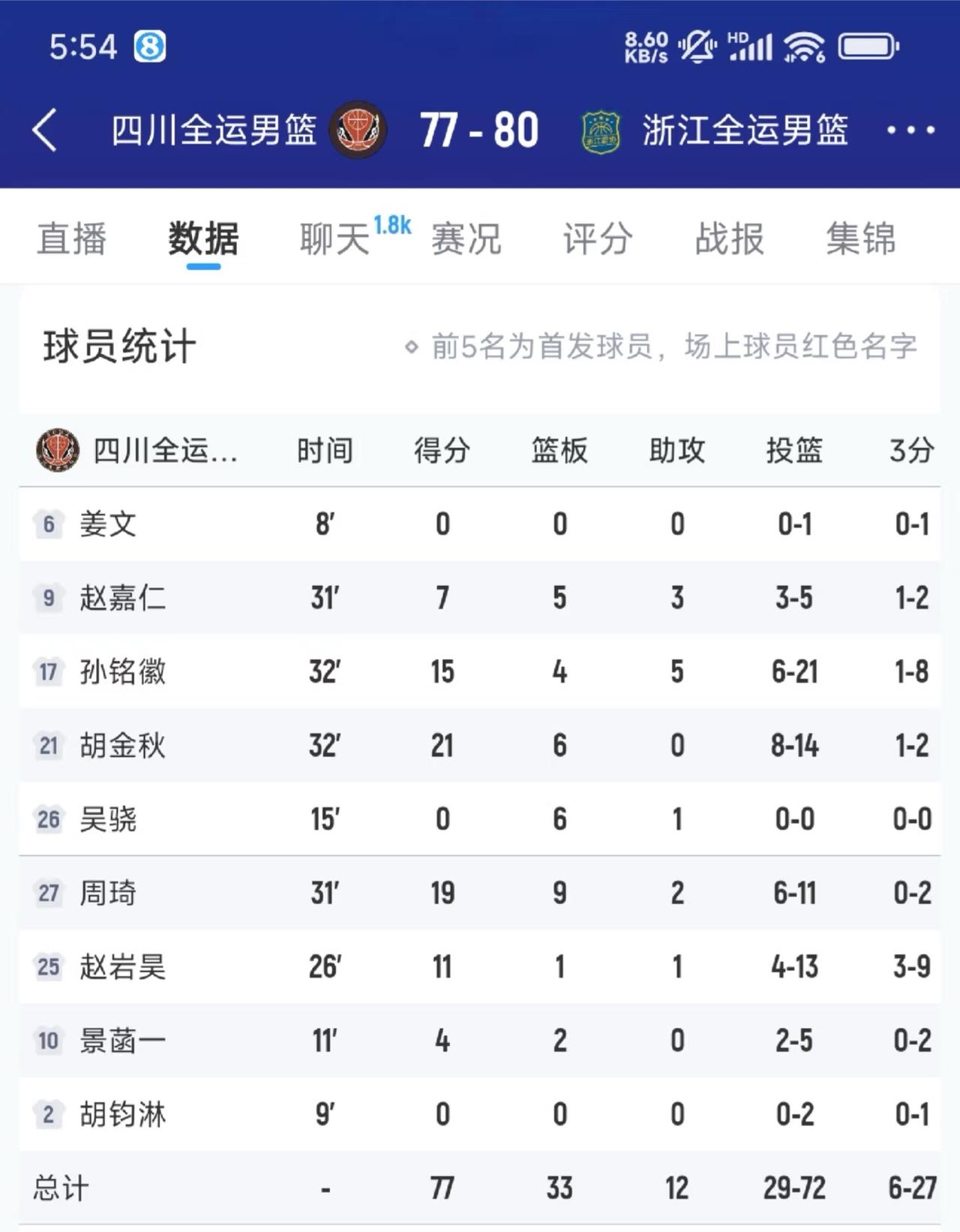 周琦19+9难救主!浙江淘汰四川杀入全运决赛。 花了这么大的投入没能夺冠应该不能接受吧,这阵容也真的是冠绝全国了,CBA总冠军班底加周琦,主教练也是总冠军教练。