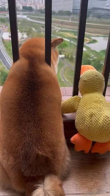 表面上:小柴正在和小黄鸭看风景实际是:小黄鸭在看风景,小柴只是刚好被卡住了[笑哭]