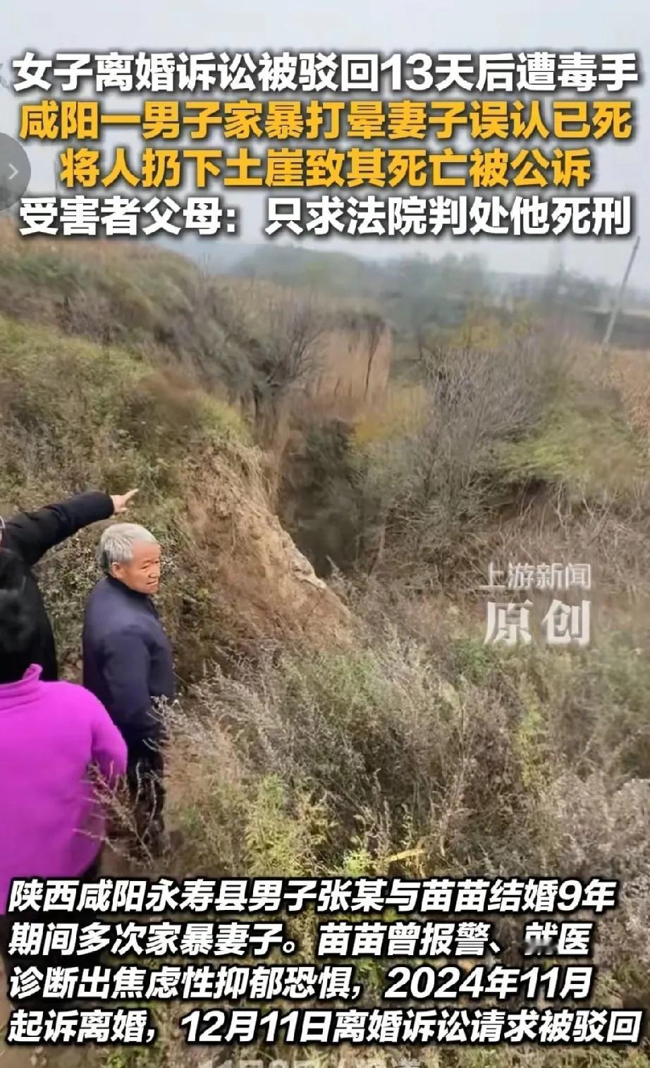 看的好难受!陕西女子才31岁,和丈夫结婚9年,生了两个可爱的儿子。最后的结局却是被丈夫掐晕,扔到土崖坠崖身亡。 女子的父亲很后悔,他说女儿报喜不报忧,早知道女儿一直被家暴,她要离婚的时候就不该劝她的。 这事儿看的人心里堵得慌,31岁正是好好过日子的年纪,九年婚姻两个孩子,没换来珍惜反而遭了毒手。这女子叫苗苗,1993年生的,跟丈夫张某是一个县的,还是经人介绍认识的,没想到这一嫁就跳进了火坑。结婚没多久家暴就开始了,张某拳头说挥就挥,打完了又装模作样道歉,说自己会改,可改来改去还是老样子。 苗苗太懂事也太能忍,被打得浑身是伤,跟娘家报信从来都是报喜不报忧,怕家人担心。长期的家暴让她患上了焦虑性抑郁,满心都是恐惧,2024年10月终于下定决心起诉离婚,可12月法院居然驳回了她的请求。谁能想到,离婚请求被驳回才13天,悲剧就发生了。 张某找到苗苗在西安的出租屋,又是一顿长时间殴打,直到苗苗失去意识。他没想着送医院,反而开着车在路上兜兜转转,觉得人已经没了,就把苗苗扔到几十米深的土崖下。更可气的是,他之后还假惺惺跑到苗苗娘家,催着老人把女儿叫回来离婚,背地里却早就下了狠手,甚至报警谎称苗苗是自己跳崖的。 苗苗的父亲现在肠子都悔青了,当初女儿说要离婚,他还劝着往回拉,哪知道女儿在那个家里受了这么多罪。很多家暴受害者都跟苗苗一样,想着为了孩子忍一忍,想着对方能改,想着家丑不可外扬,可家暴这东西,只有零次和无数次。 全国妇联早有数据,2.7亿个家庭里,30%的女性曾遭家暴,平均遭受35次后才会报警。有时候劝和不劝离,反而成了把受害者往火坑里推的推手。如果当初法院能重视苗苗的家暴证据,如果家人能早点知道真相全力支持她离婚,如果她自己能更早勇敢求助,这场悲剧或许就能避免。 各位读者你们怎么看?欢迎在评论区讨论。