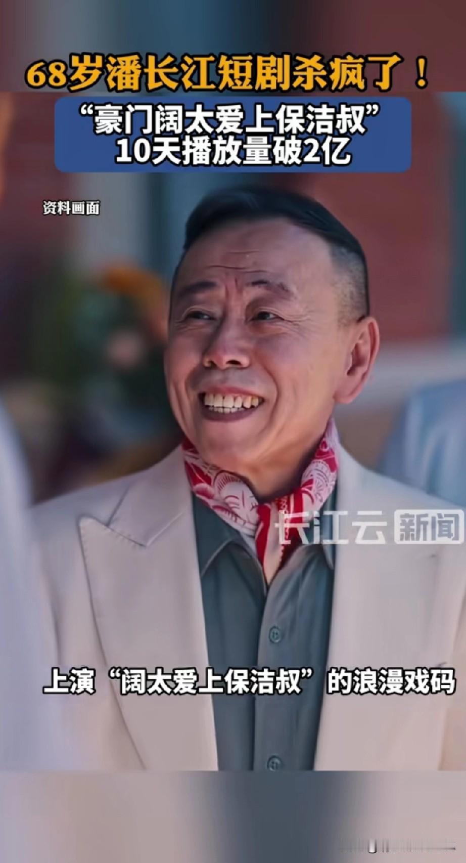 真没想到,老戏骨潘长江竟然也去演短剧了,而且还播放量爆火! 68岁的潘长江,首部短剧《进击的潘叔》,上线即炸,10天播放量破两亿! 剧中潘长江饰演的保洁大叔,被豪门阔太倒追,上演了一出“豪门阔太爱上保洁叔”的浪漫戏码! 刘晓庆也曾在节目中透露,她自己也在演短剧,而且她还说觉得拍短剧挺好的! 反正我平时是没有看短剧的习惯,总感觉那些短剧没有营养,而且剧本和演员的演技都很夸张! 不知道这些老戏骨,为什么愿意放下身段去演短剧呢? 此事大家怎么看呢?