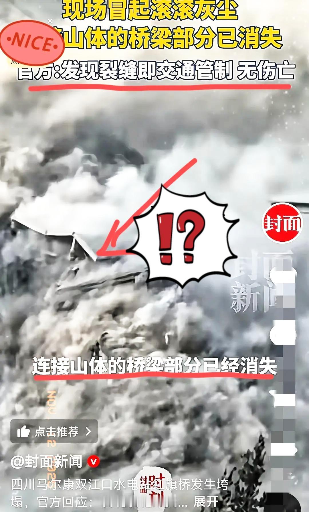 这个消息太让人揪心了!四川马尔康刚合龙10个月的红旗特大桥轰然垮塌,172米主墩坠入河道,烟尘冲天的视频看得人脊背发凉。 万幸预警及时没造成伤亡,但这绝不能成为“免责符”。官方初步说是山体滑坡导致,可这座桥地处水电站库区,地质环境本就特殊,当初设计施工时难道没充分预判? 更关键的是,桥梁安全没有“偶然”,无论是地质风险评估不足,还是施工质量有隐患,都不该让刚建成的新桥沦为“短命工程”。 基建工程容不得半点侥幸,每一个数据、每一道工序都连着生命。 必须彻查到底,不仅要找垮塌直接原因,更要追溯全流程责任。你觉得是地质因素主导,还是背后有其他隐情?来评论区聊聊~ 阿坝坠河事故 阿坝坠河 阿坝坠河事故 阿坝坠江 公路大垮塌 雅康高速垮塌