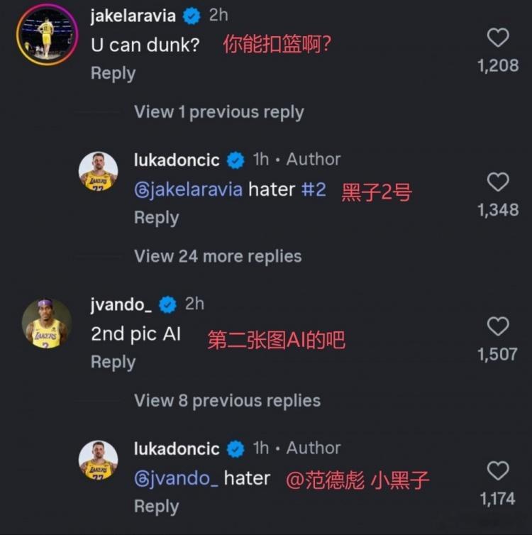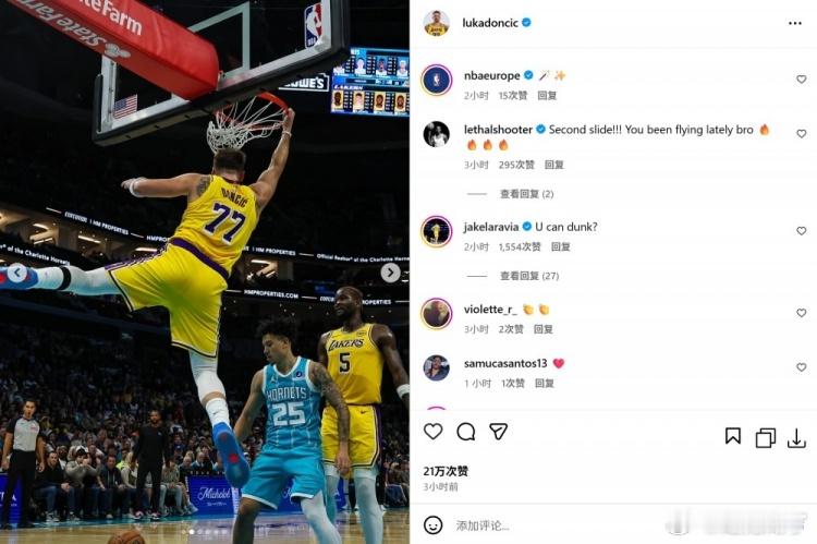 球队氛围真的好!东契奇晒扣篮照被调侃 东契奇回复拉拉维亚+范德彪:“小黑子和黑子2号”