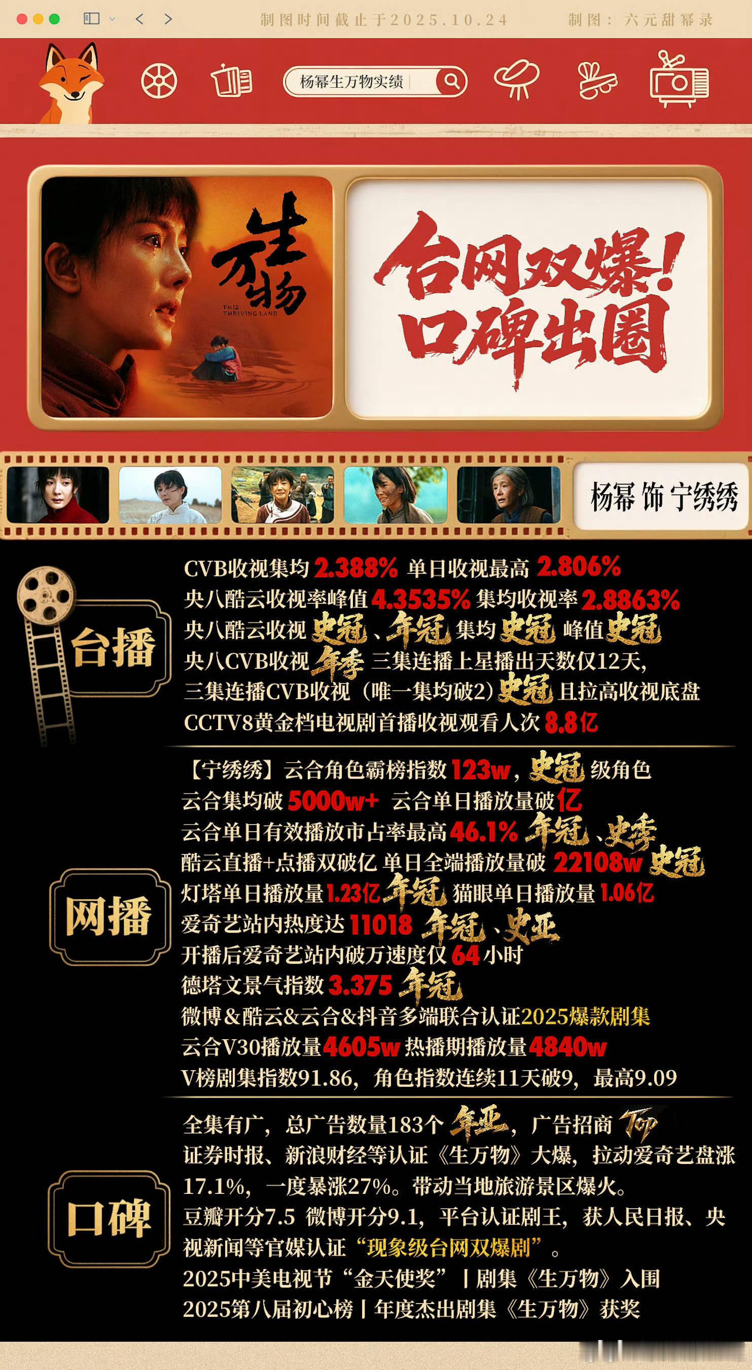 爱奇艺今年的剧王是生万物无疑了,台网双爆,实力超强,杨幂实力扛剧。
